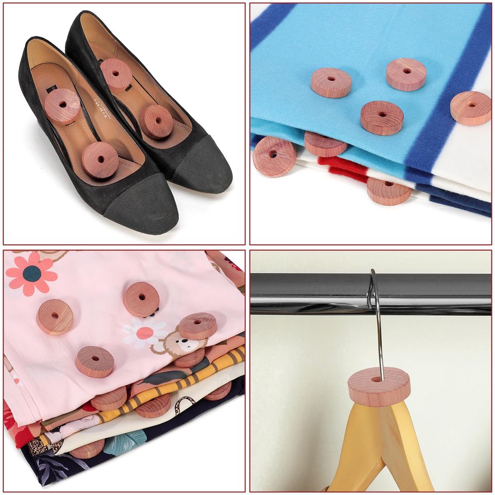 PERFECT STORAGE ACCESSORY: The naturally scented cedar rings give off a delightful forest perfume that keeps your garments feeling fresh and free of moths, bugs, mildew, and mustiness. The cedar wood rings might come into close contact with sensitive fibers like your sweater, wool clothing, and other valuables. With the help of cedar rings, you can put an end to your storage woes.