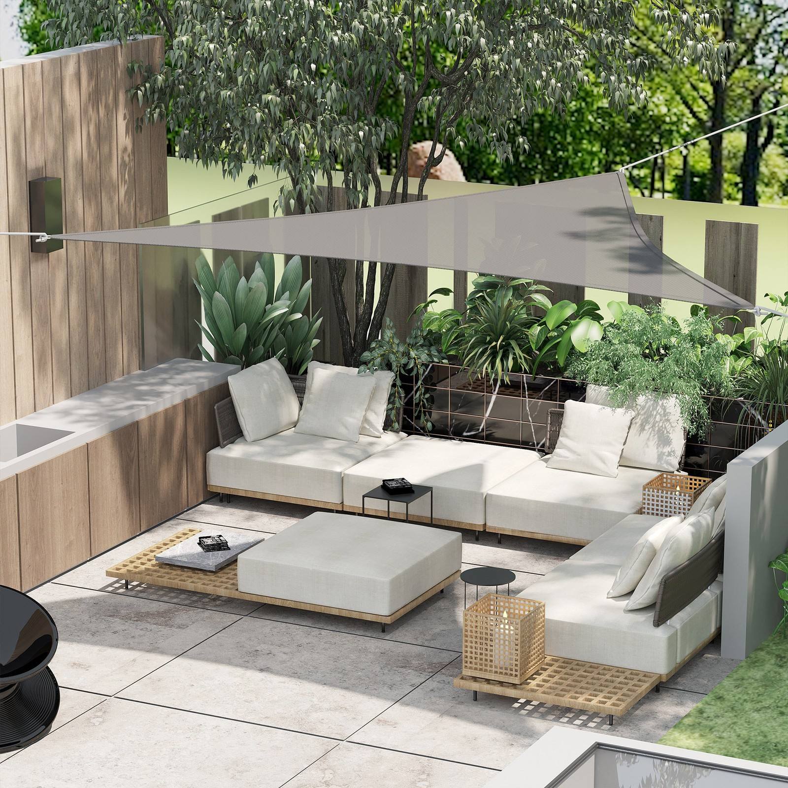 4x4m Triangle Sun Shade Sail Outdoor UV Protection Canopy w/ Steel Rings Ropes UV Block Outdoor Patio Shelter Grey