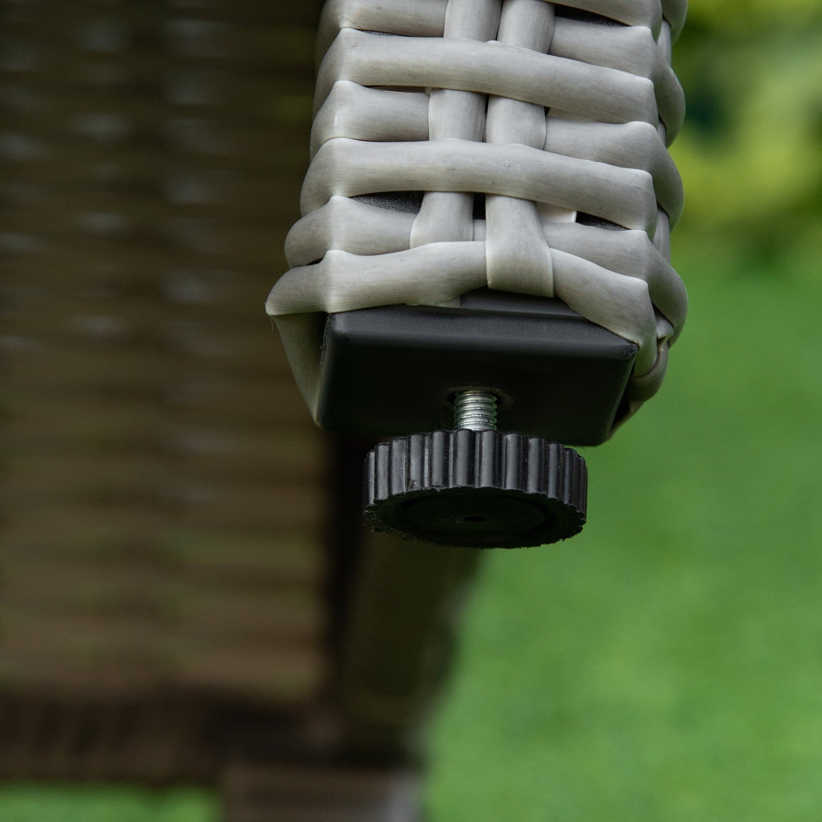 Sit back and relax in complete comfort with this 2 seater rattan sofa from Outsunny. Formed of five pieces, the set includes two reclining armchairs, two footstools and a matching coffee table. Made from hand PE rattan with aluminium frame, each piece of the garden furniture sets is sturdy, weather resistant and low maintenance. The table comes with an inner cooler to keep food and drink fresh and away from pests. The cushions ensure premium comfort.