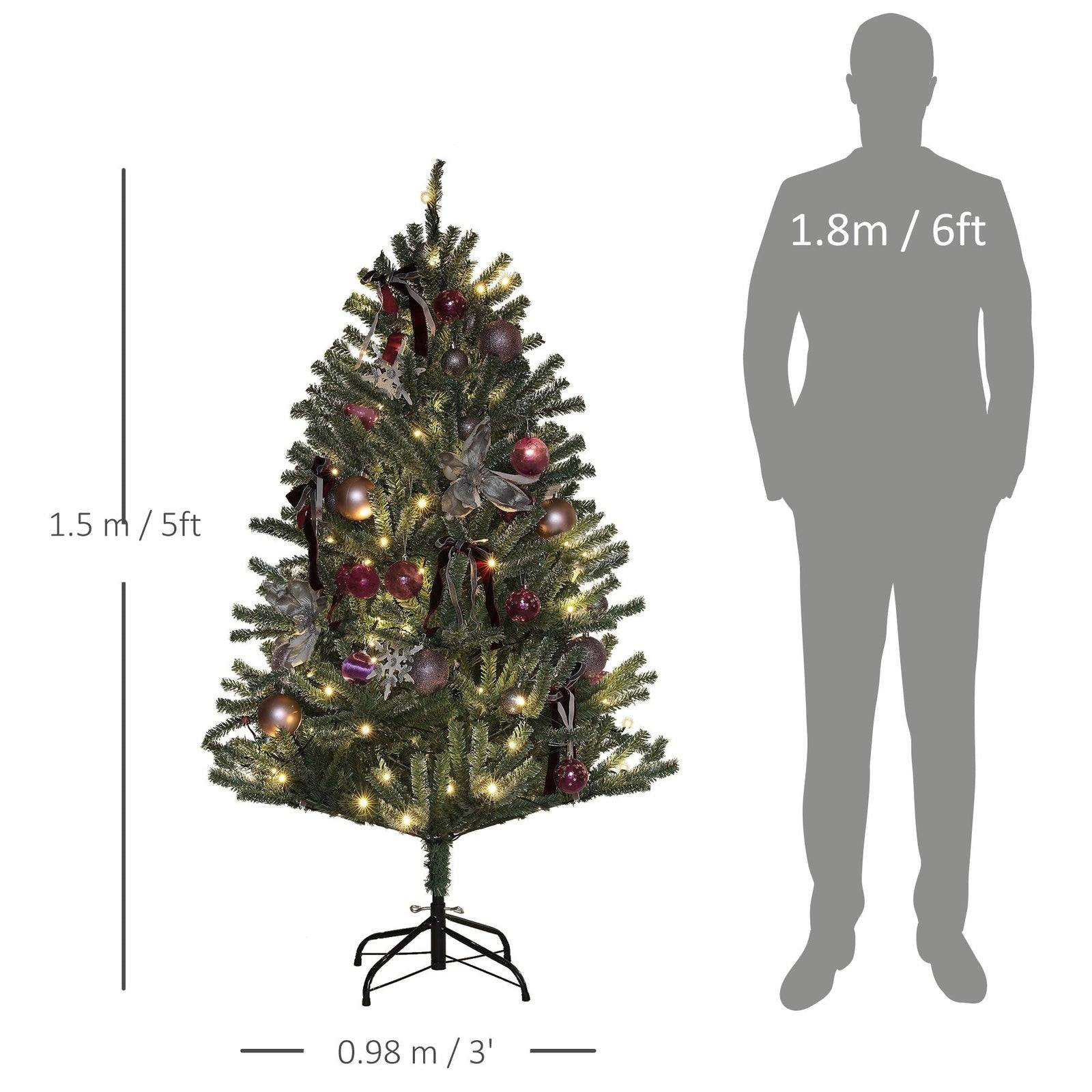 5ft Decorated Christmas Tree Artificial - Dark Green with LED Lights Warm White 486 Tips