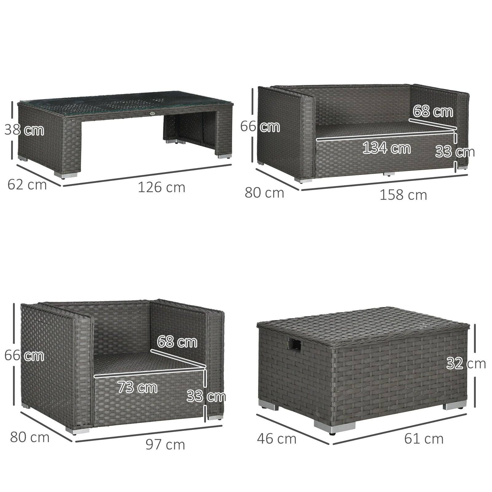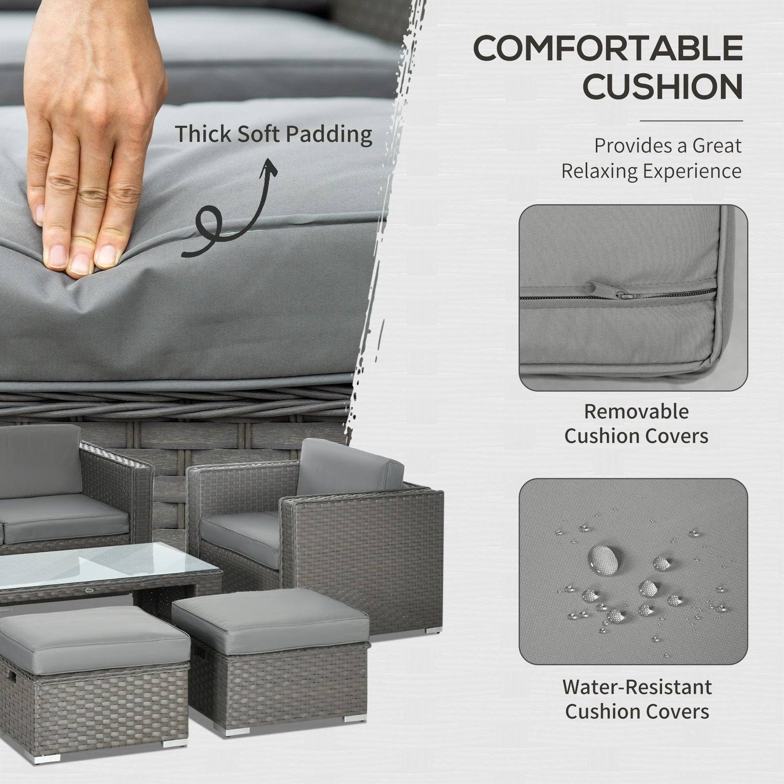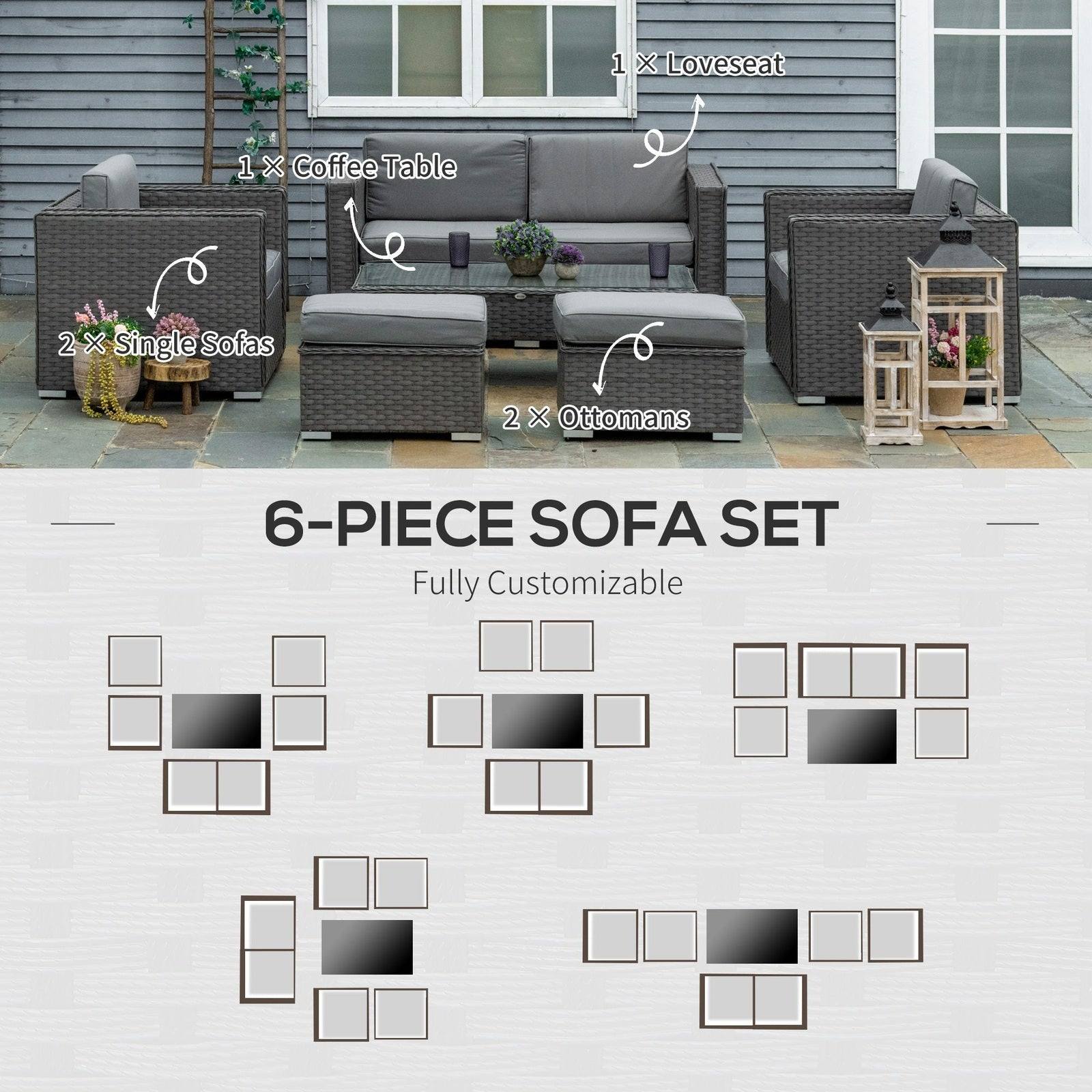 6-Piece Garden Rattan Sofa Set Bonzer Outdoor Furniture Patio Table Loveseat Stool Lounging Ottoman Aluminium Frame Wicker Weave Conservatory Grey