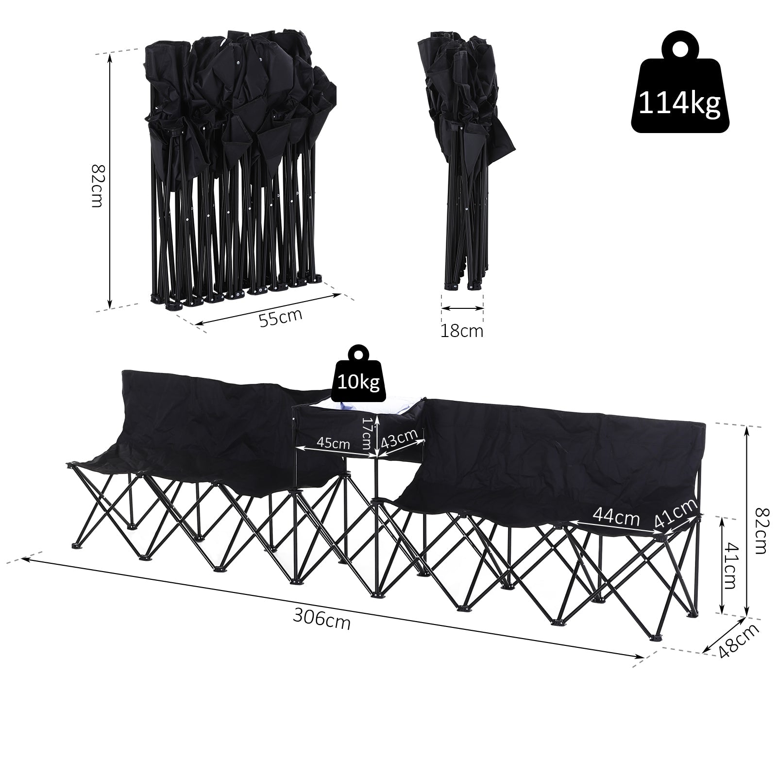 6 Seater Folding Steel Camping Bench With Cooler Bag Black