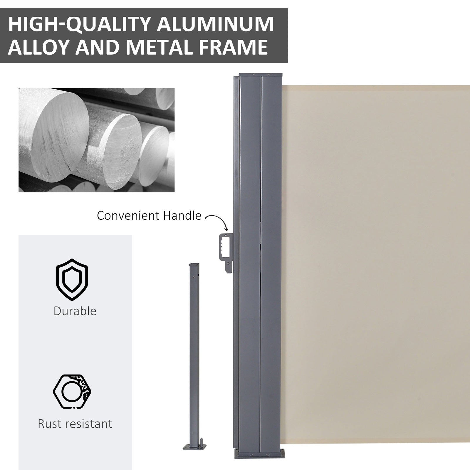 6 x 1.6 M Double Canopy Pull-Out Side Awning Sun Rain Outdoor Protection w/ Steel Frame Retractable Garden Privacy Home Commercial Beige