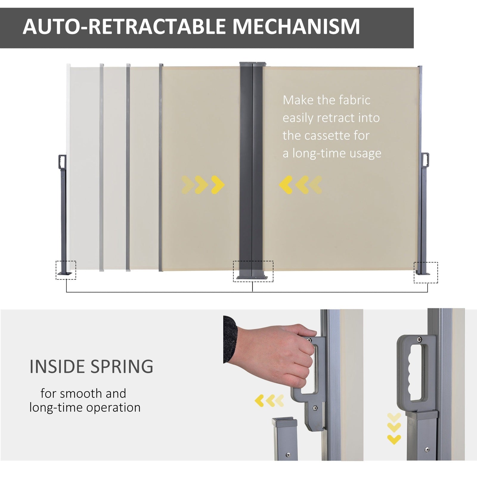Prevent glaring sun and gusting winds disturbing you outdoors with this retractable screen from Outsunny. The metal base frame is tough to ensure it is a lasting addition in your garden, with it attaching securely to cement or solid wood for quick set up. The double awning is made from polyester with PA coating for weather-resistance, with it pulling out smoothly and fixating in place with the clip lock handle a simple operation. A great way to enjoyably extend your time out in the garden.