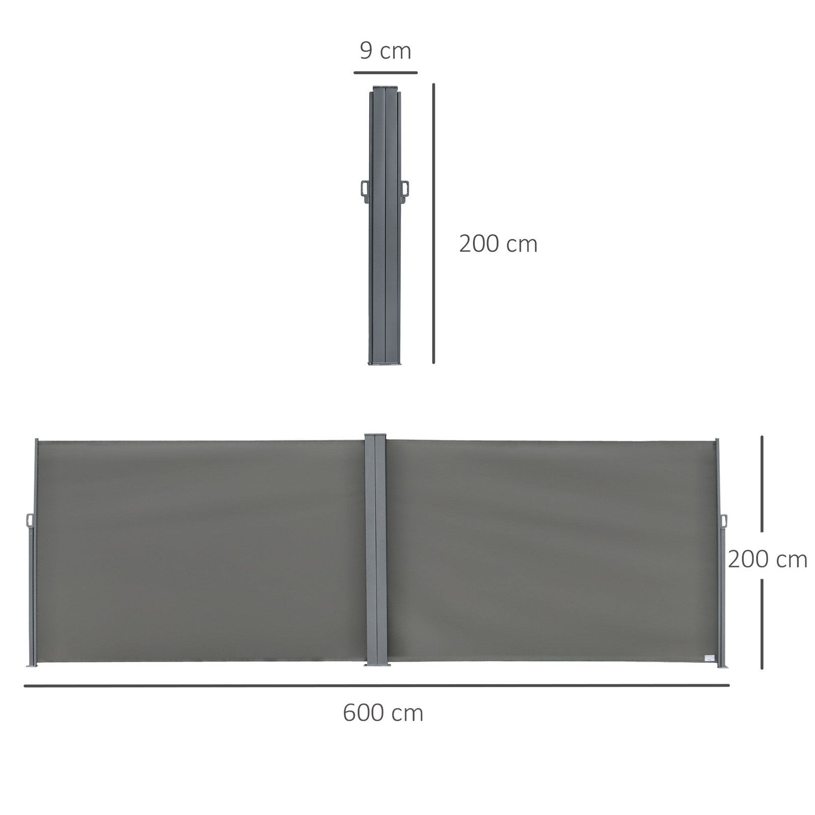 6 x 2m Retractable Sun Side Awning Screen Fence Patio Garden Wall Balcony Screening Panel Outdoor Blind Privacy Divider Grey