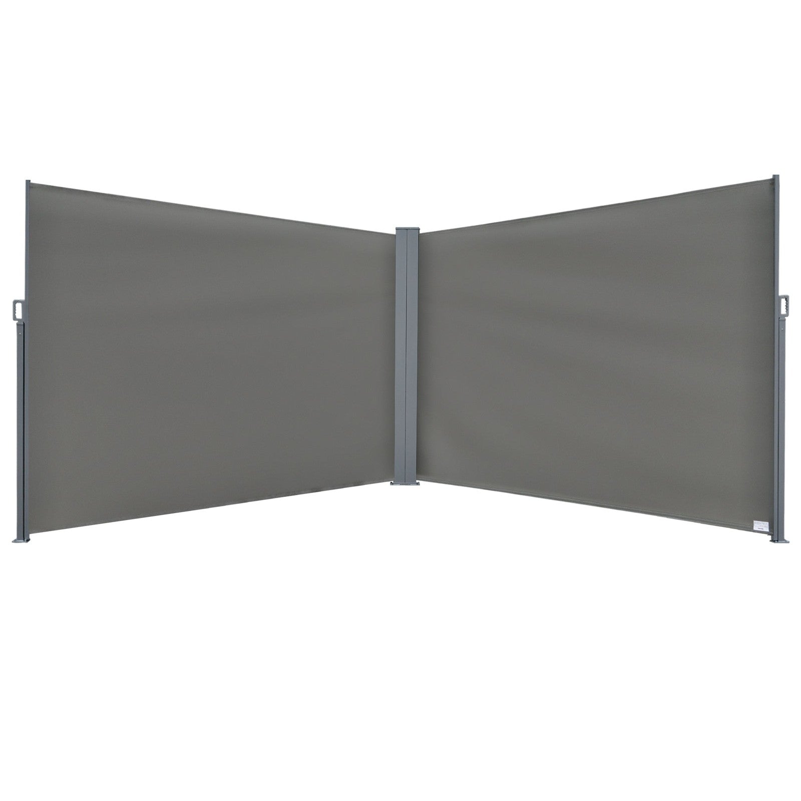 Prevent glaring sun and gusting winds disturbing you outdoors with this retractable screen from Outsunny. The metal base frame is tough to ensure it is a lasting addition in your garden, with it attaching securely to cement or solid wood for quick set up. The double awning is made from polyester with PA coating for weather-resistance, with it pulling out smoothly and fixating in place with the clip lock handle a simple operation. A great way to enjoyably extend your time out in the garden.