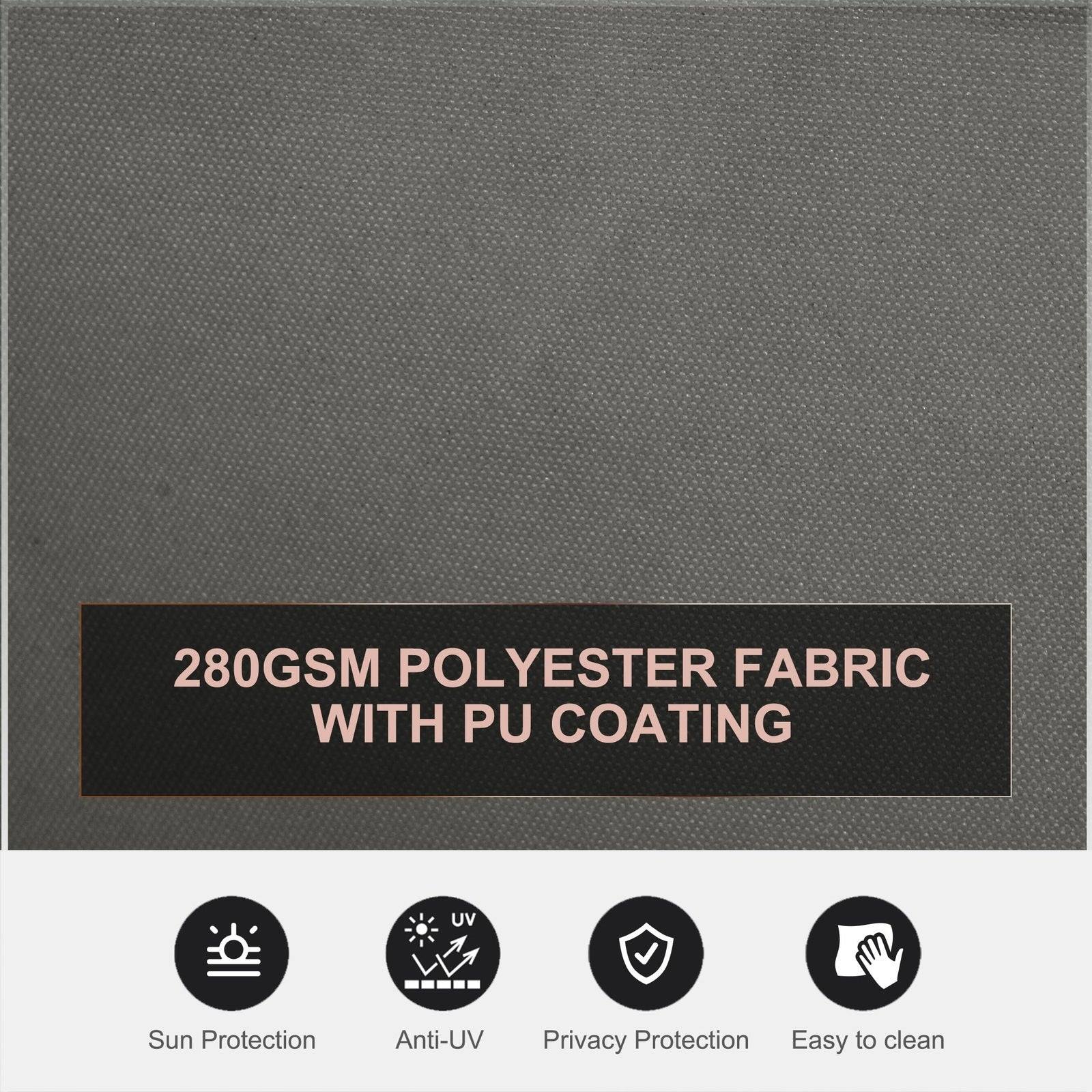 - 280gsm polyester canopy with PU coating is tough and resistant to mild weather