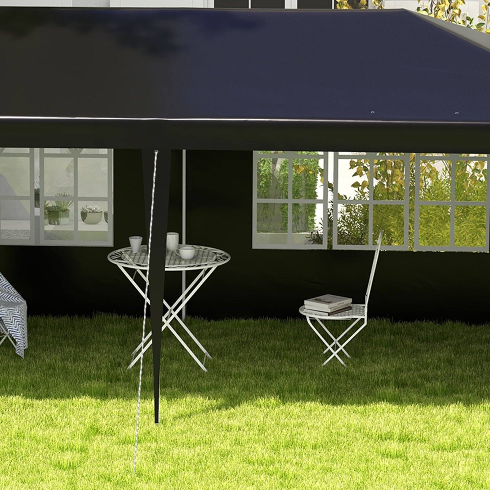 Create safe shelter with guests when entertaining outdoors - do it with this Outsunny 5.83 x 2.95m marquee gazebo with sides. It's formed of a steel frame for a tough structure, with a durable plastic canopy covering half - no front for an open feeling. Six guy ropes and 12 ground pegs are included to pin to the ground for extra stability. For many events like BBQS, family parties, wedding receptions, BBQs and more. Finished with handy adjustable feet.