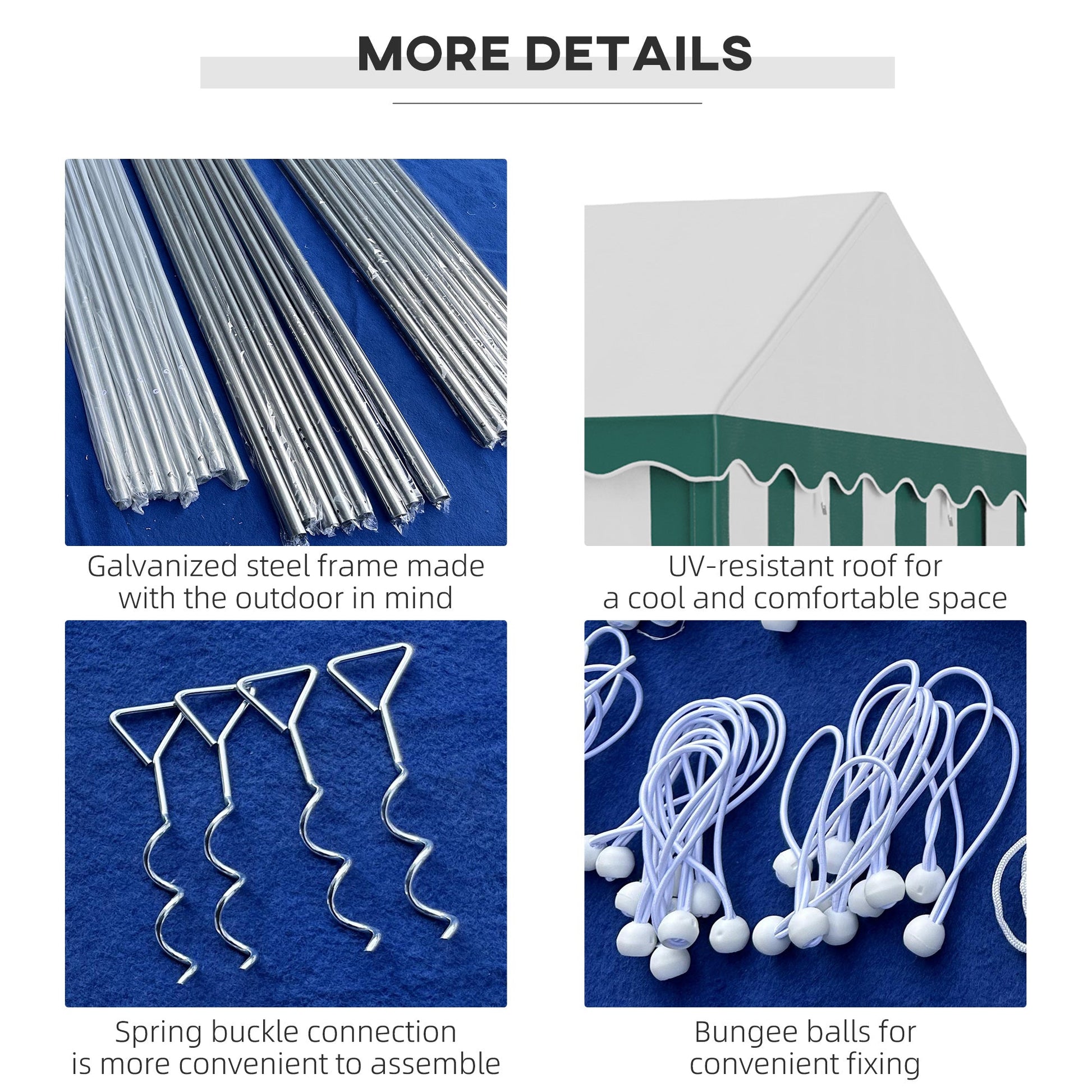 For your outdoor gatherings this season, say hello this 6 x 4m marquee gazebo with sides, from Outsunny. A galvanised steel frame means a strong, sturdy core; it's fitted with a thick plastic canopy for a safe inner shelter. The roof shields you inside from direct sunlight and light wind and rain - ideal for keeping you and guests sheltered when needed. All the walls can be taken off when you want to open up on hotter days - with windows to allow sunlight in when they're fixed in place.