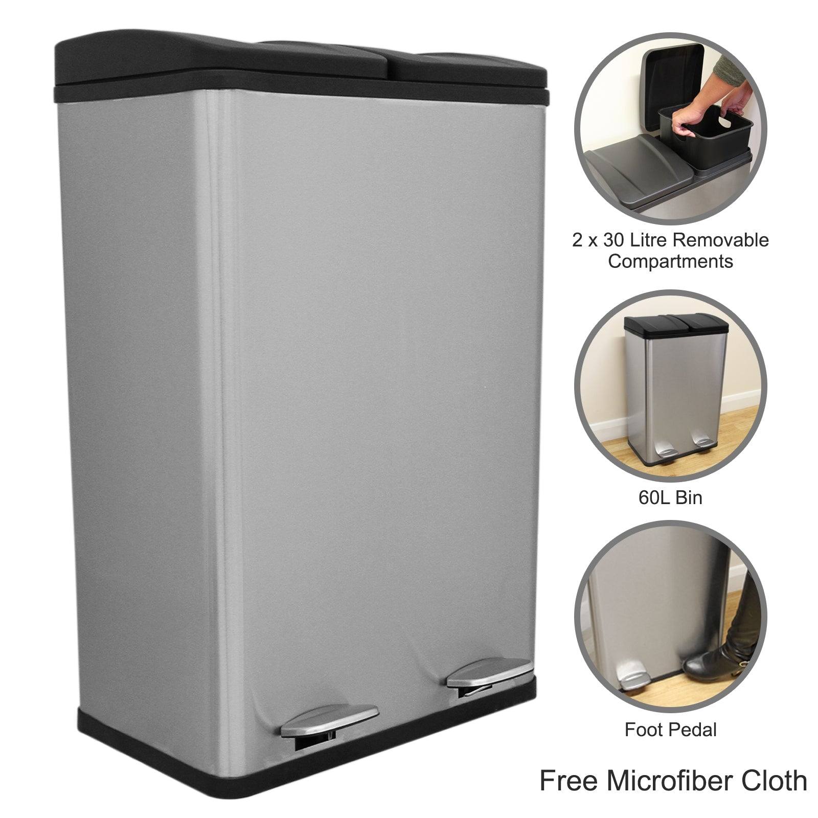 - A durable, dual compartment pedal bin with an impressive overall capacity of 60L