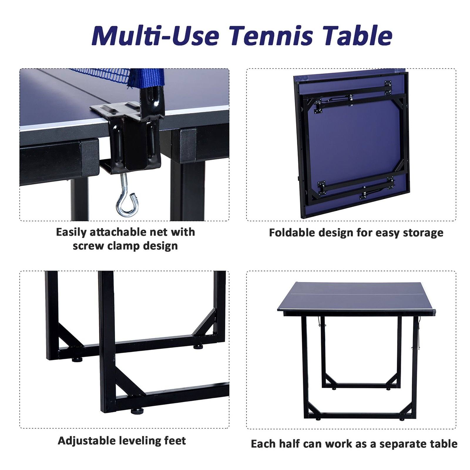 6ft 182cm Mini Table Tennis Table Folding Ping Pong Table with Net Multi-Use Table for Indoor Outdoor Game