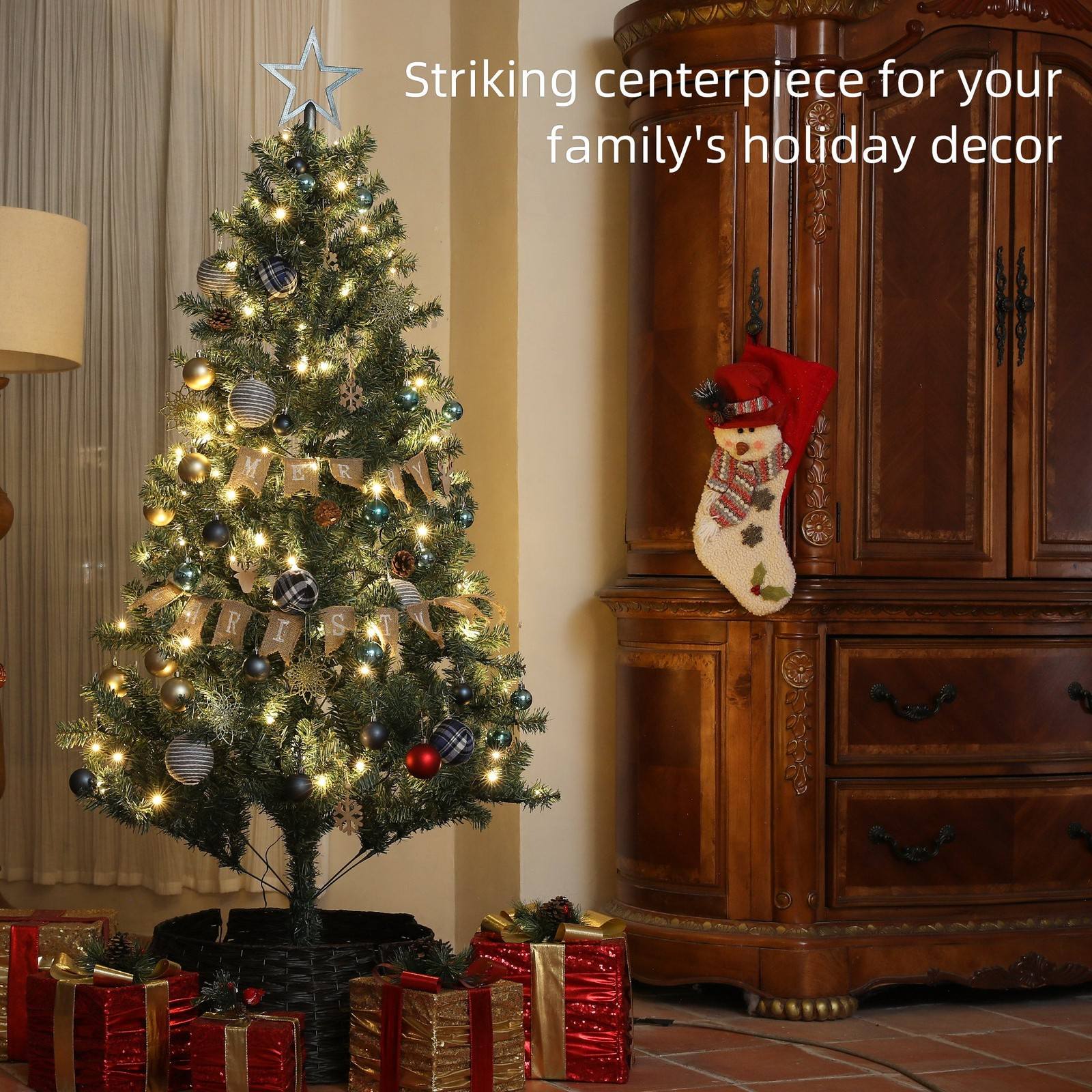 6ft Decorated Christmas Tree Artificial - with LED Lights Warm White 353 Tips