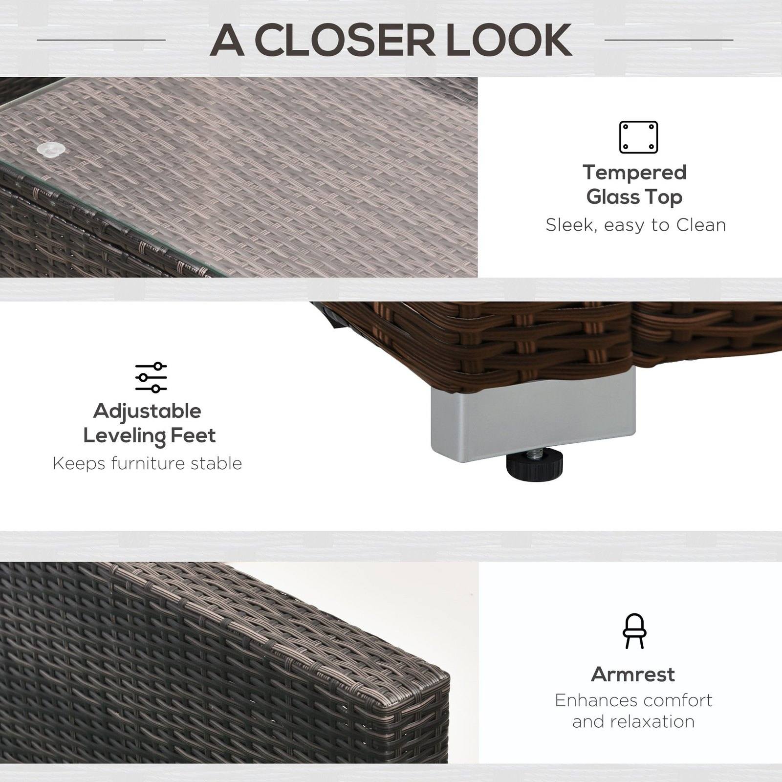 Make your garden stand out like never before with this beautiful outdoor corner sofa from Outsunny. Using aluminum for the base frame of the garden sofa to create a long-term and stable structure, each of the eight pieces included (two corner seats, four normal seats, a footstool, and table) are wrapped in mixed-grey rattan to ensure strength of the conservatory furniture, with a smooth finish that can be wiped clean easily. Padded seats and back cushions provide comfort.