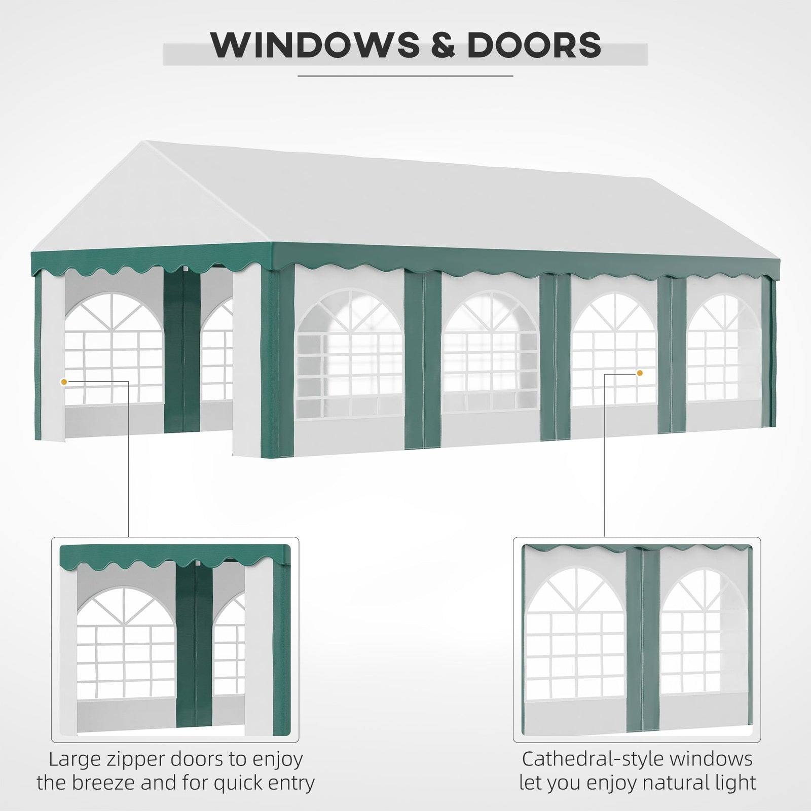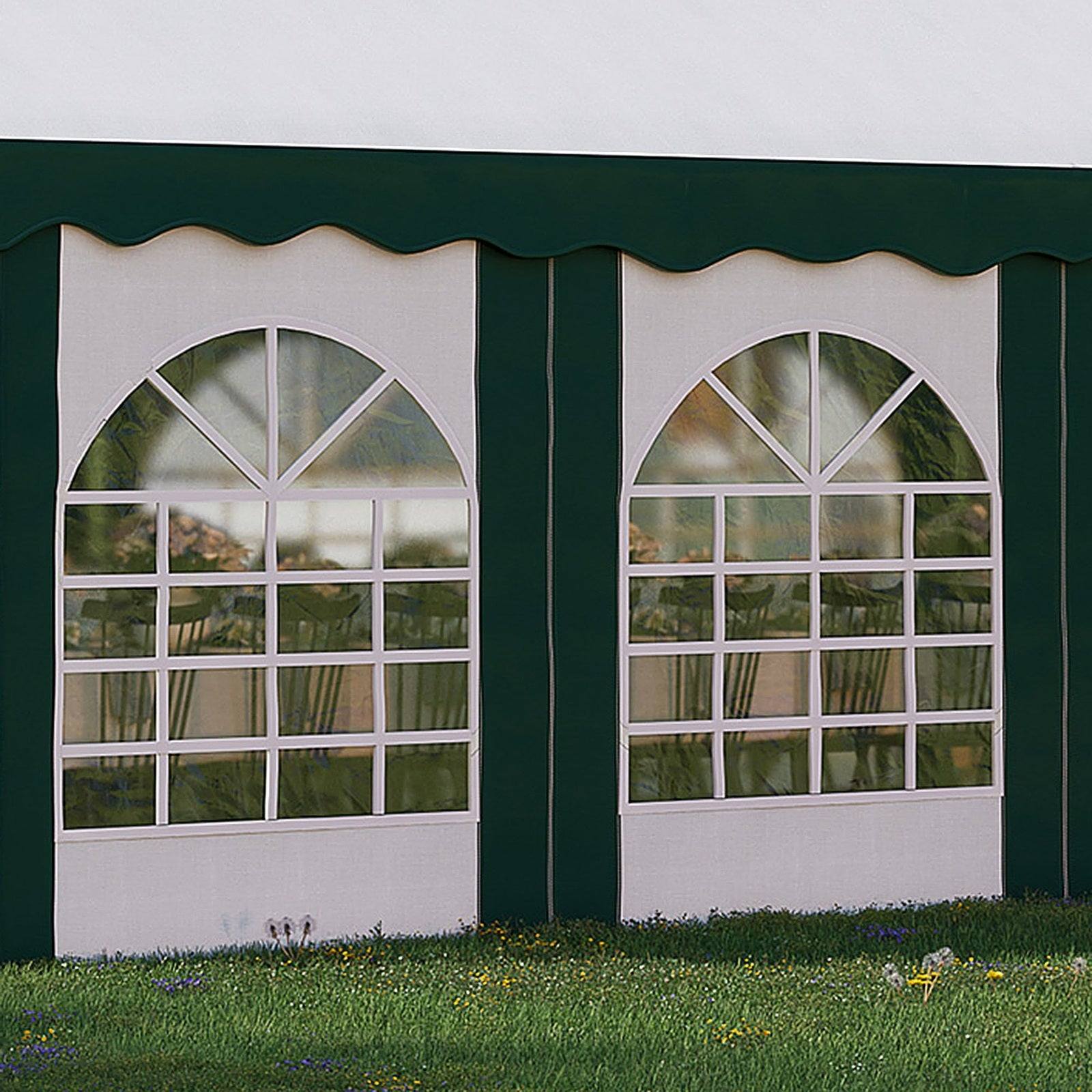 For your outdoor gatherings this season, say hello this 8 x 4m marquee gazebo with sides, from Outsunny. A galvanised steel frame means a strong, sturdy core; it's fitted with a thick plastic canopy for a safe inner shelter. The roof shields you inside from direct sunlight and light wind and rain - ideal for keeping you and guests sheltered when needed. All the walls can be taken off when you want to open up on hotter days - with windows to allow sunlight in when they're fixed in place.