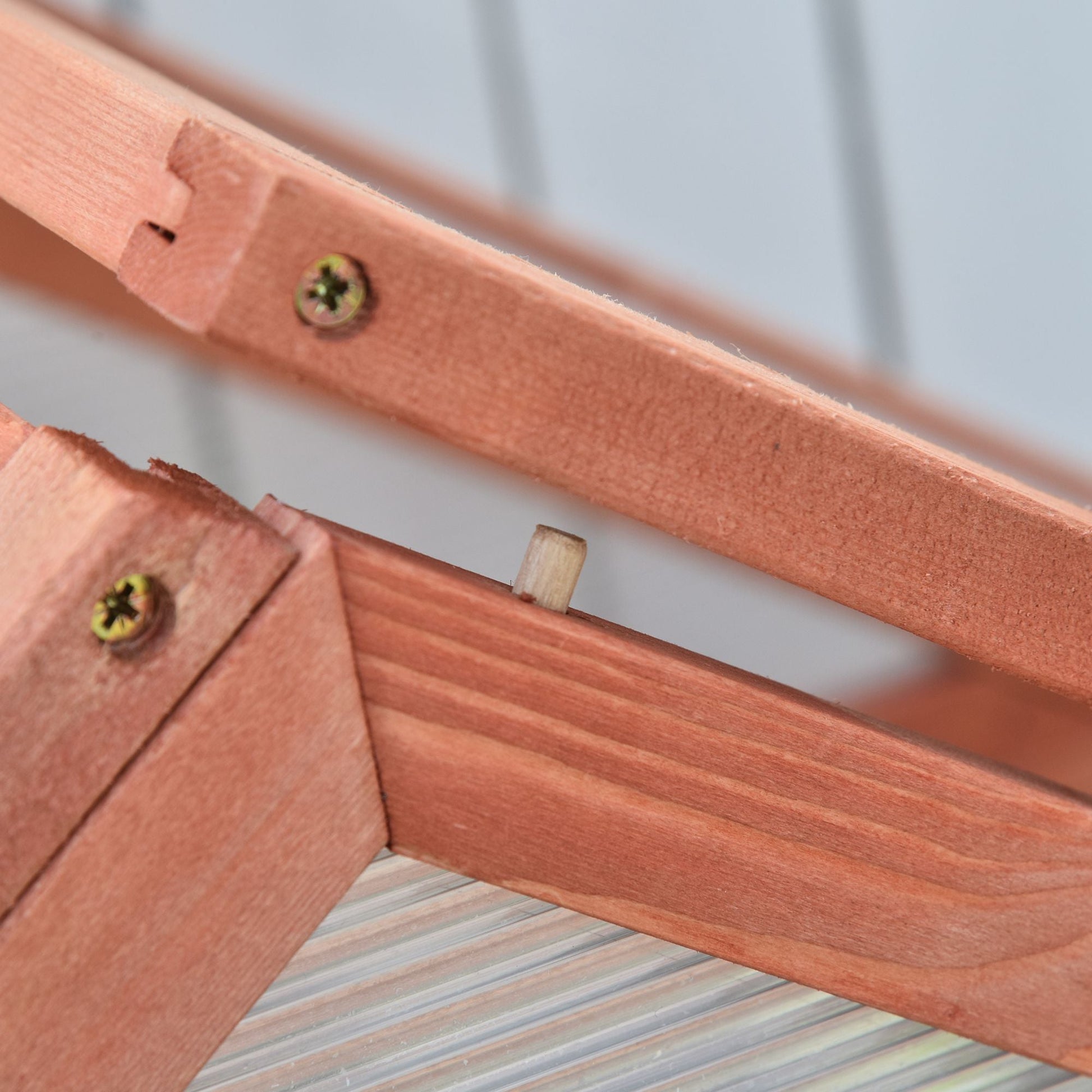 - Solid wood frame, fitted with polycarbonate panels to allow light through and help keep heat in