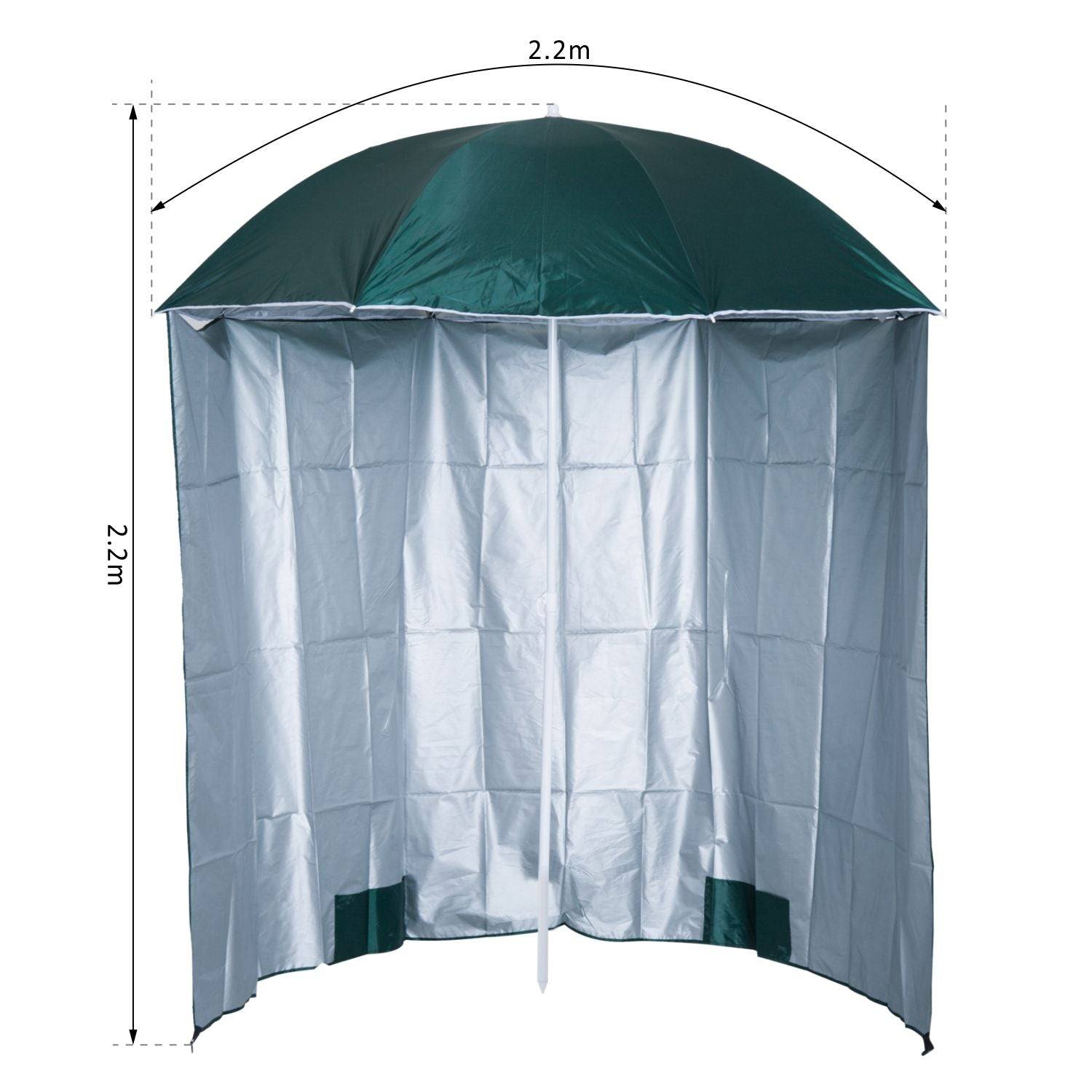 88" Arc 2.2M Fishing Umbrella Beach Parasol with Sides Brolly Shelter Canopy Shade with FREE Carry Bag Green