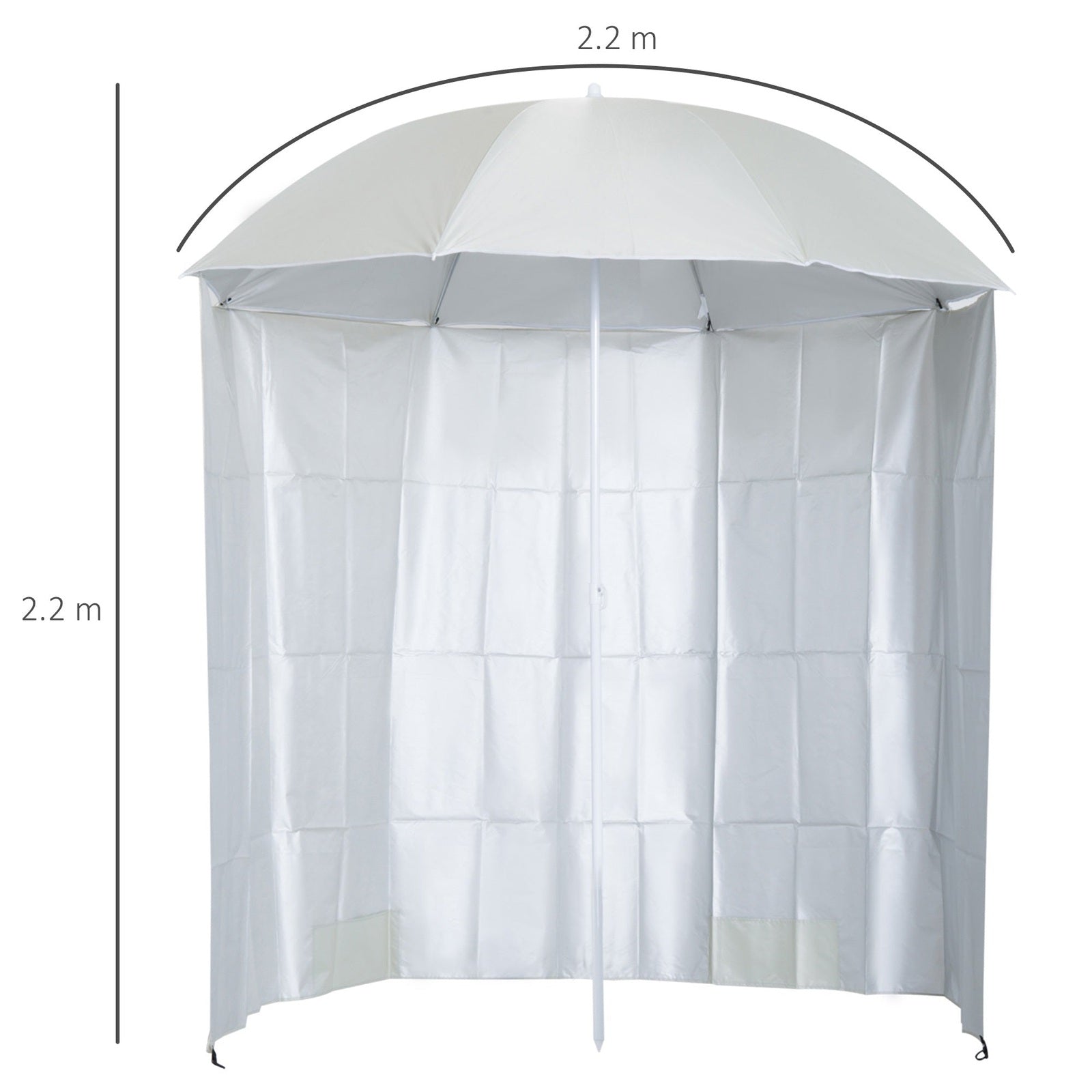 88" Arc 2.2M Fishing Umbrella Beach Parasol with Sides Brolly Shelter Canopy Shade with FREE Carry Bag Off-White