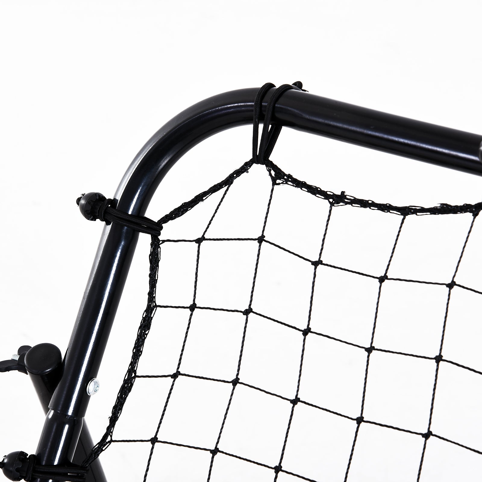 Whether youre a beginner or professional this Football rebounder net from HOMCOM is perfect for sharpening up your skills building strength and improving confidence. Made using steel the frame has been built to last for years of practise supporting the weather-resistant net via 20 elastic cords that aid in handling the impact when the ball hits. Adjustable at the back the net can be set to suit you and its ability to reflect the ball back at various angles is great for developing your skills and pushing you further and making you more confident playing matches. Lightweight easy to carry and foldable this net can be stored and taken anywhere with ease making it great for use by anyone of any age.