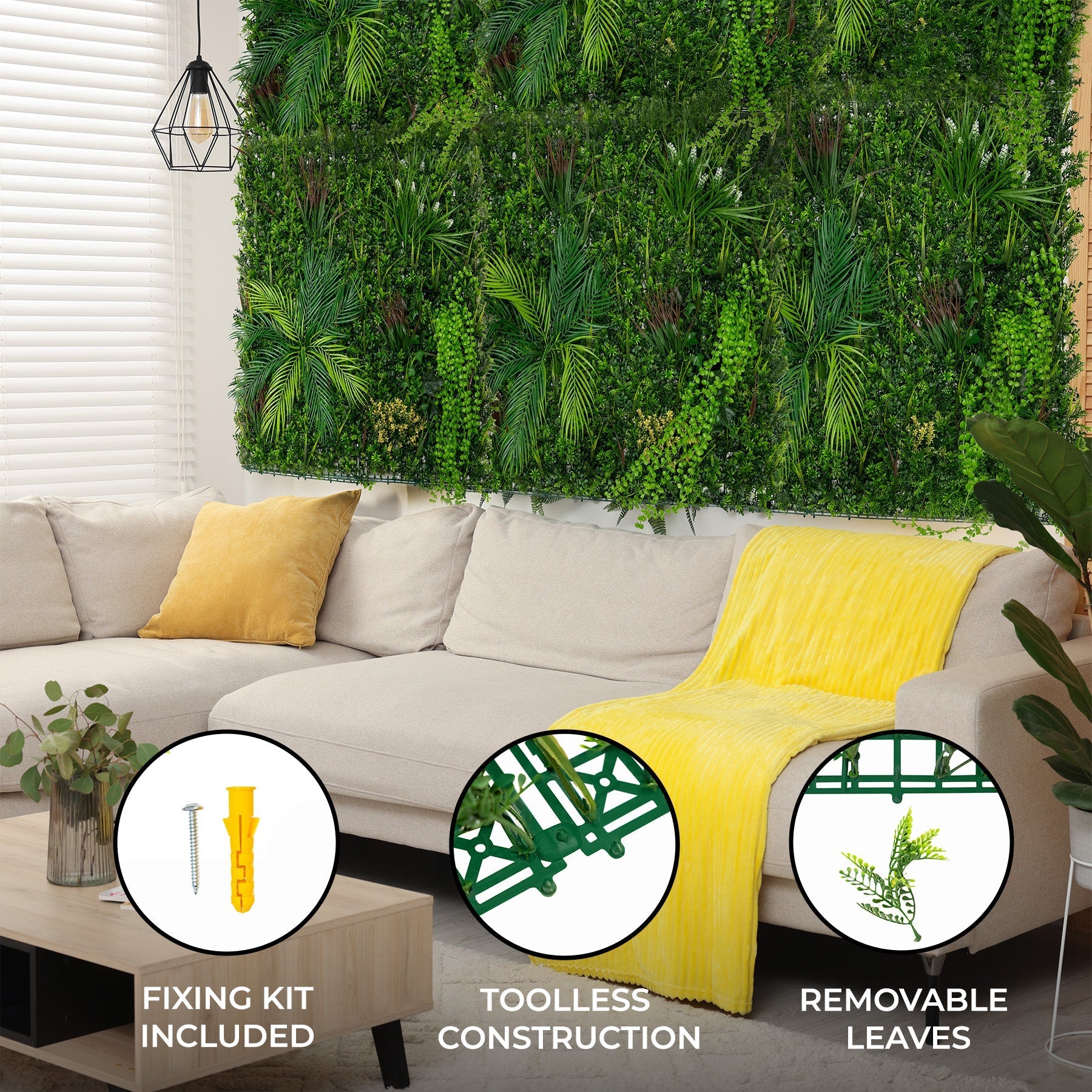 Measuring 100cm x 100cm, these tiles offer expansive coverage, allowing you to effortlessly create the look of a realistic plant wall. Designed for both impact and practicality, their structured yet flexible form ensures a seamless fit, whether you're enhancing a small feature area or covering an entire surface with vibrant greenery.