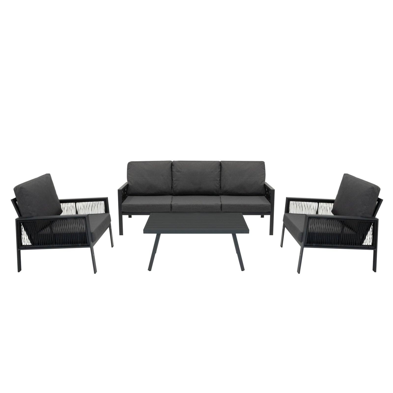 The 4-piece aluminium sofa set delivers a timeless blend of comfort and contemporary elegance. Featuring a generously sized three-seater sofa, two deep-cushioned armchairs, and a coordinating coffee table, it offers ample space for hosting friends or enjoying peaceful moments outdoors. The striking anthracite grey finish adds a modern look, while the clean lines and neutral tones ensure seamless integration with any garden or patio aesthetic. Whether it's your morning coffee spot or the hub of a summer gathering, this set creates a sophisticated and inviting atmosphere.