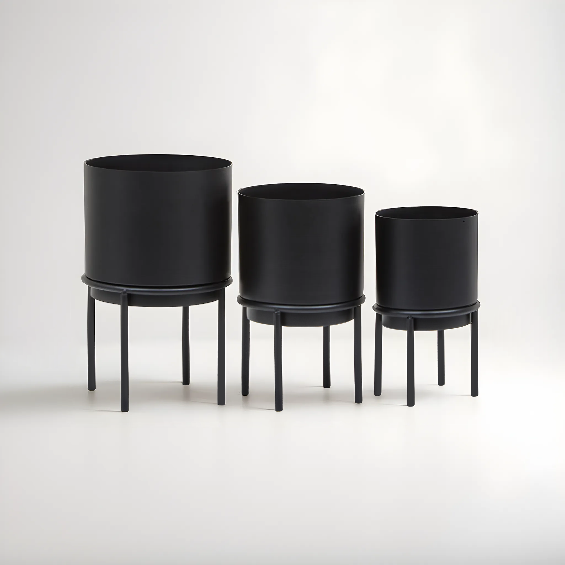 Made from durable metal, these stylish planters showcase a cylindrical design in an elegant finish. These planters are supported by a durable metal frame in a matte black finish, showcasing four legs. These modern planters look visually appealing and create a stylish focal point in the living room and hallway.