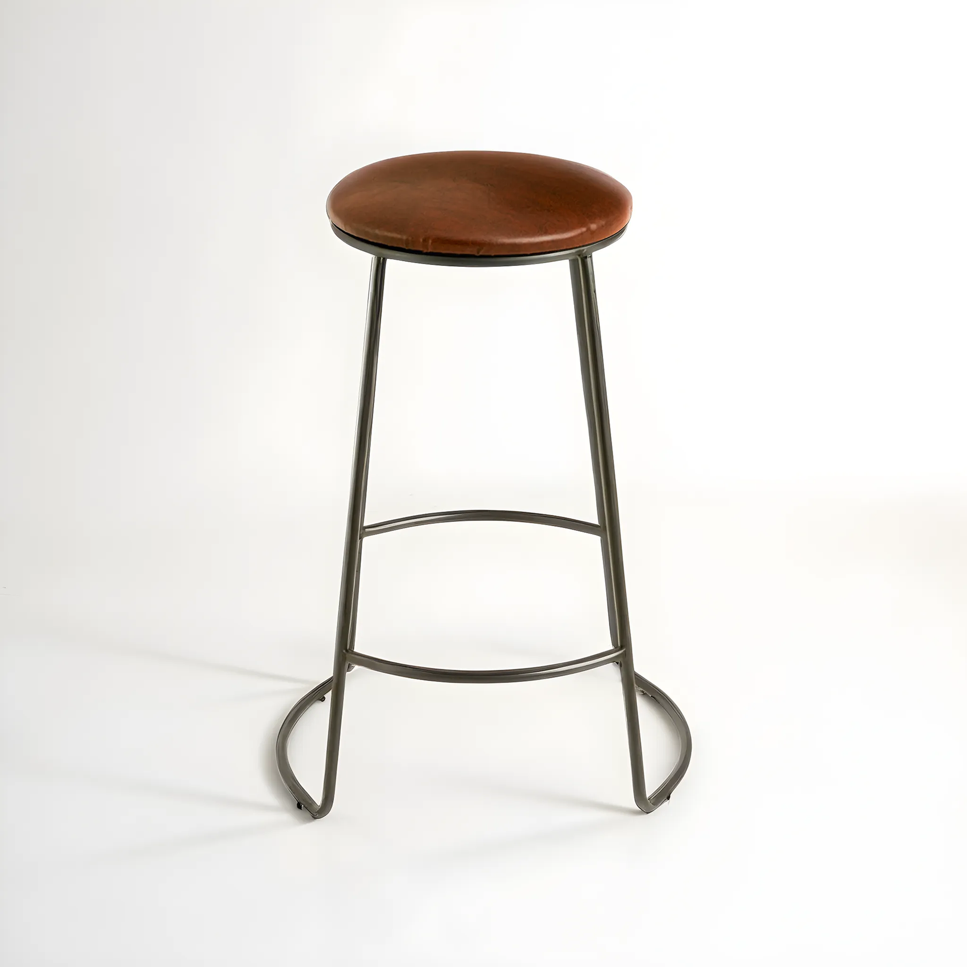 This leather-effect bar stool is a contemporary piece of furniture for your home. The stylish blend of leather and black powder-finish metal frame creates a monochromatic look. The foam-padded seat and brown leather upholstery create a regal touch with subtle graining that brings texture, making it a perfect addition for your home bar seating.