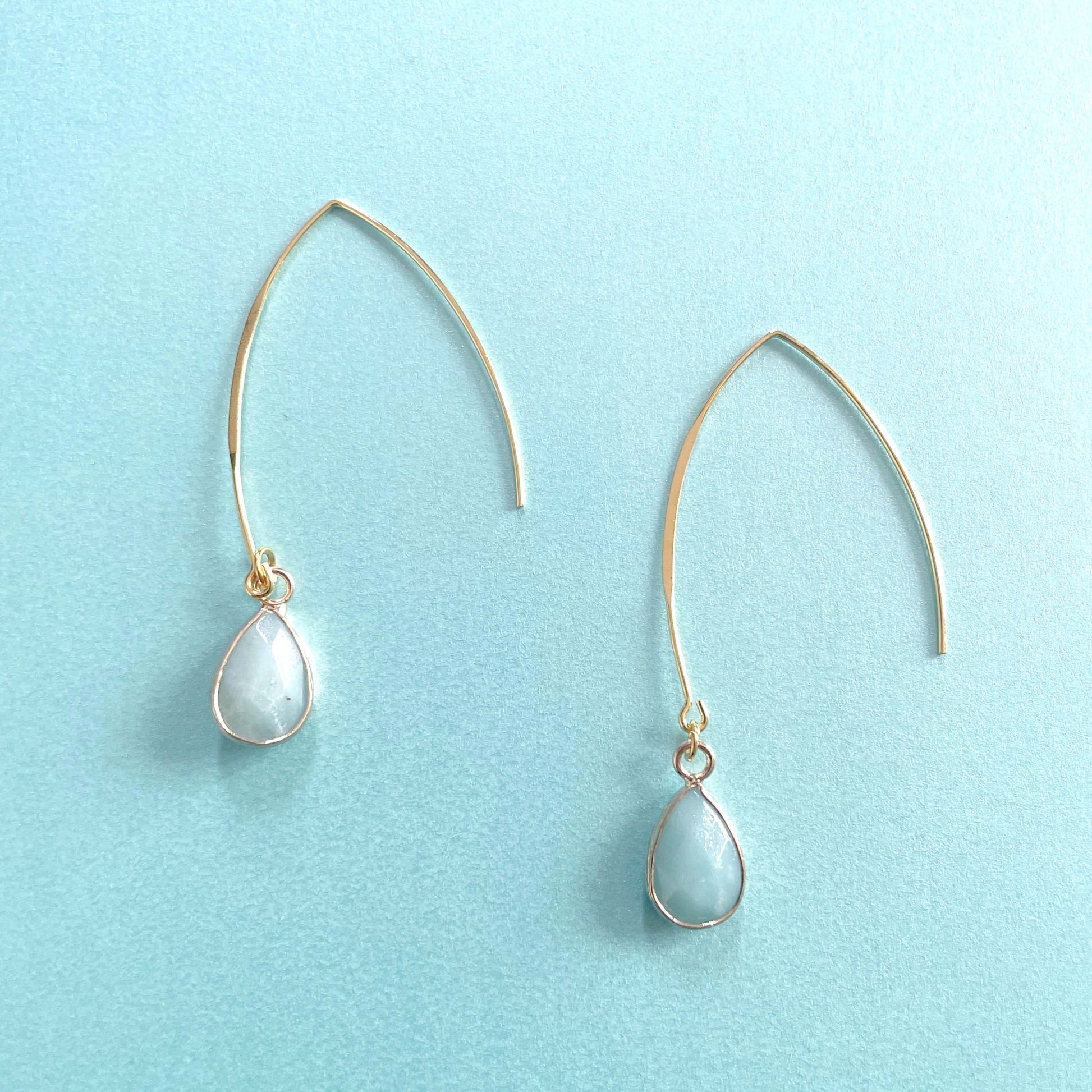 The Camille drop earrings are adorned with a beautiful faceted teardrop shaped Amazonite crystal stone.