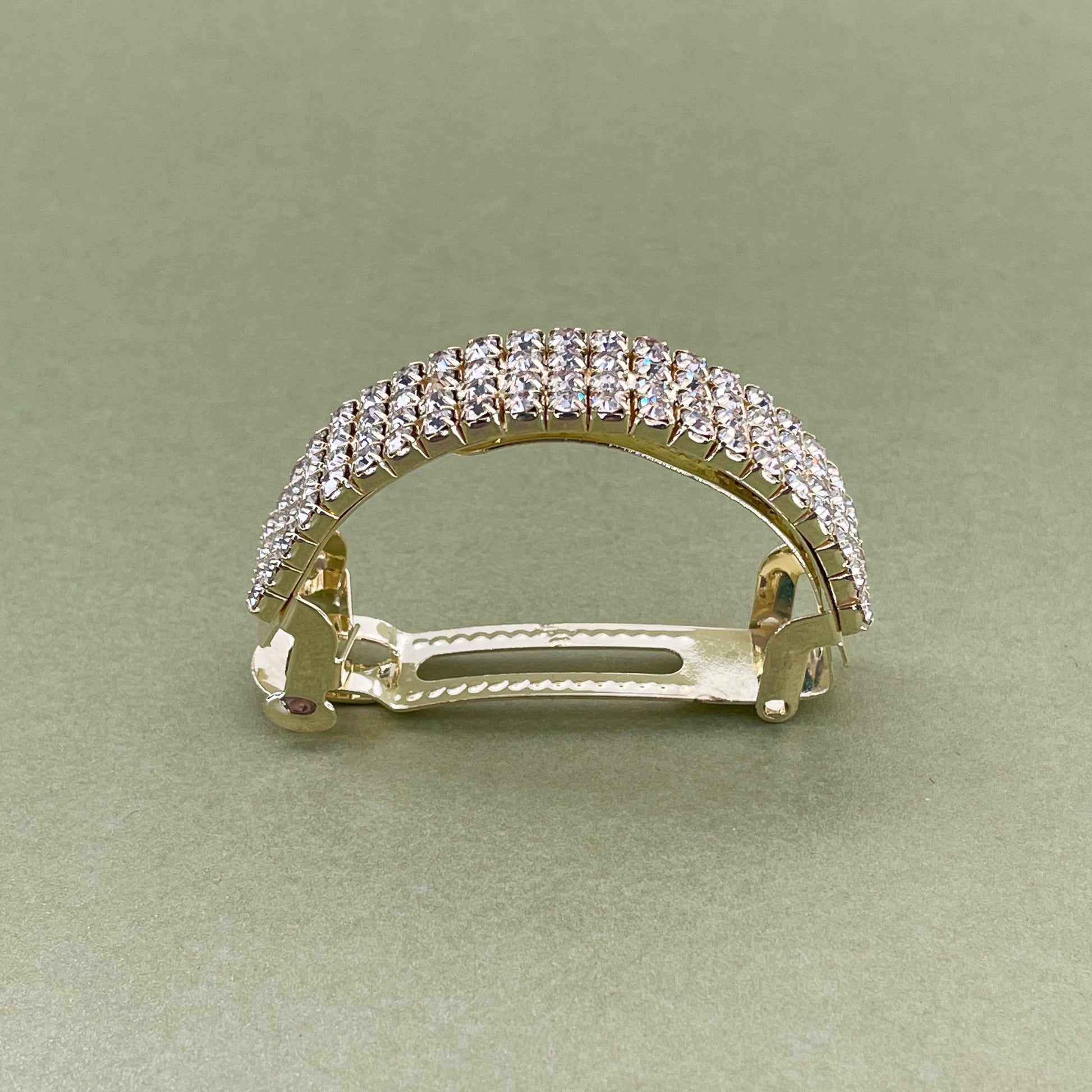 The Cassandra ponytail clip features a beautiful arched design of sparkling dimanates that will give you an elegant look with any outfit.