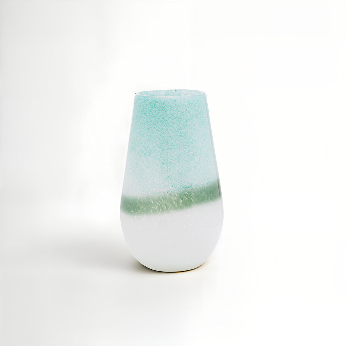 Elevate your living spaces with this ombre finish small glass vase mixing turquoise and white hues to create an airy look reminiscent of the beach. The tapered body of this decorative and functional vase feature speckles throughout its smooth surface making it a stylish addition for your window sill, mantel, console table, and bedside table.