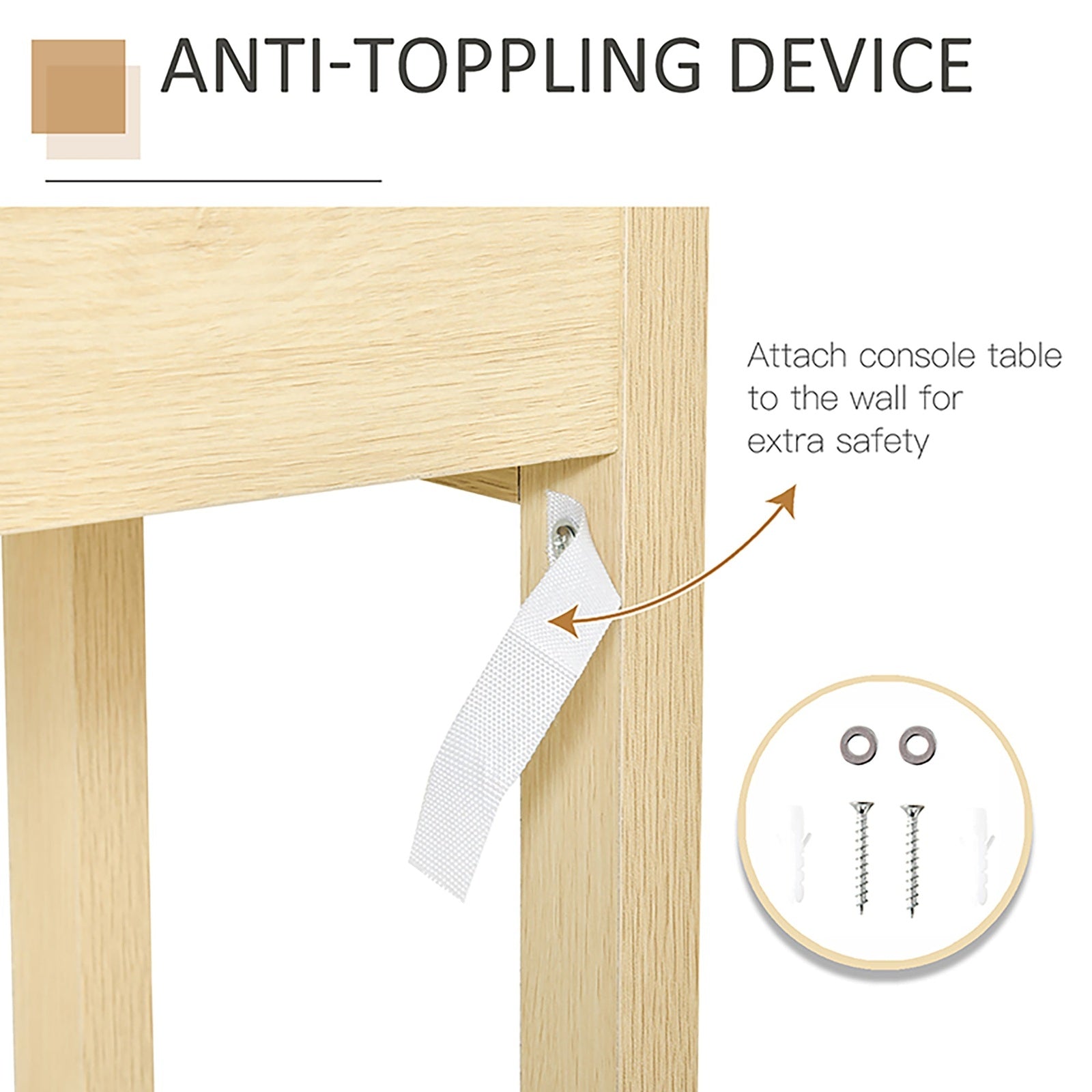 Console Sofa Table Hallway Side Desk with Storage Shelf Drawer for Entryway Living Room Bedroom Natural