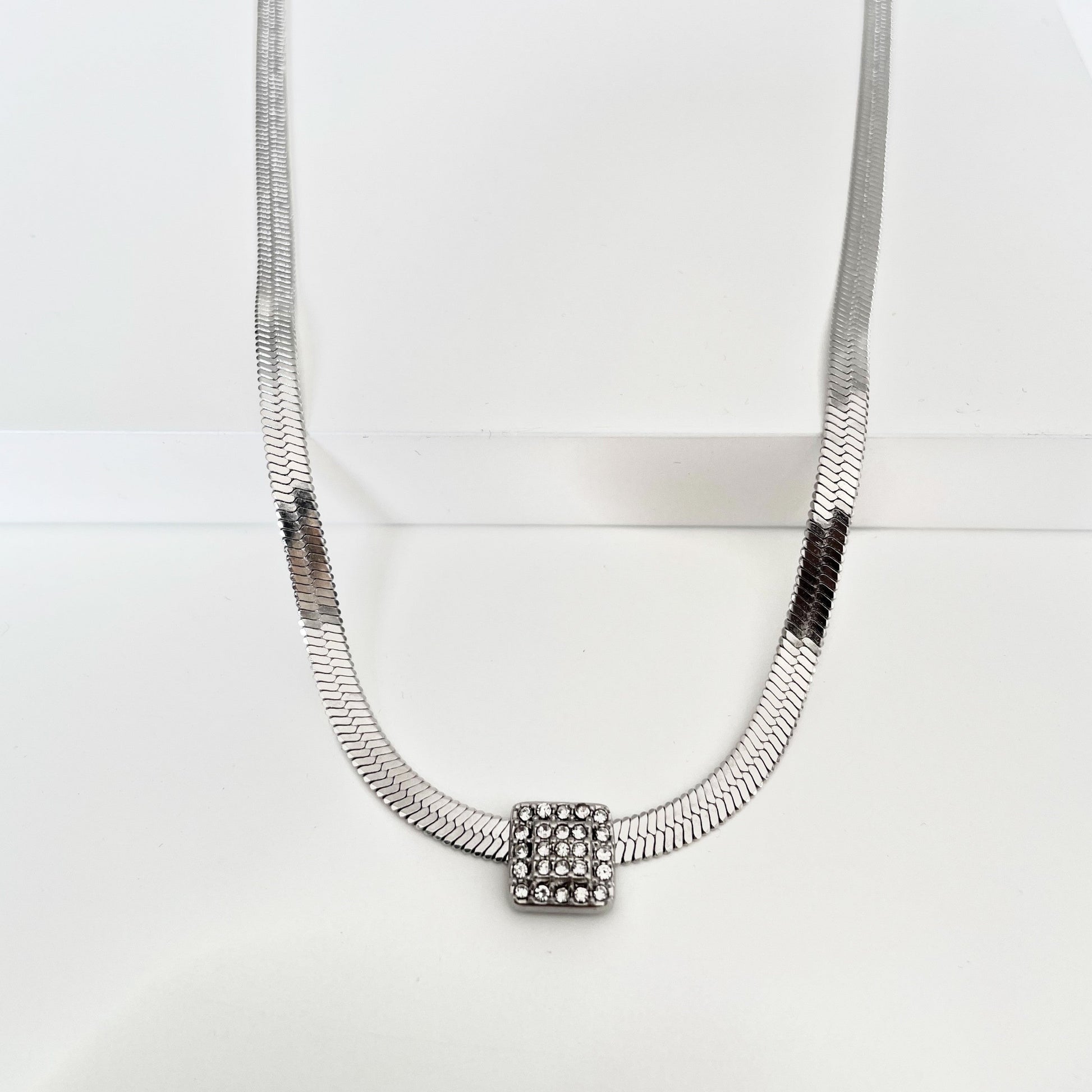 Definitely a statement piece, the Daphne Luxe Silver Jewel Necklace will add a touch of sophistication and shimmer to your look! Featuring a snake chain necklace and a gleaming jewelled pendant, this glamorous necklace is the perfect way to dress up any outfit!