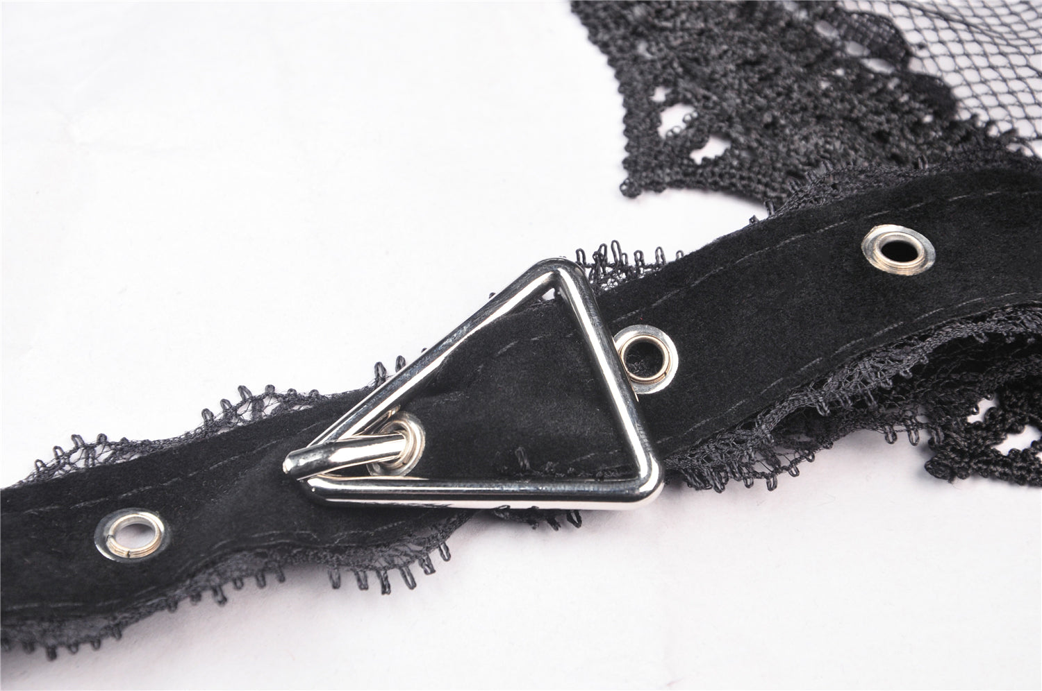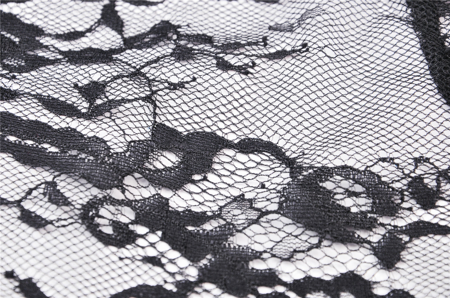 Add an extra layer of awesomeness with this stunning lace robe from Dark in Love! Featuring an irregular hemline and long bell sleeves, this delicate lace robe fastens with a faux suede belt with eyelet detail, lace trim and triangular buckle.