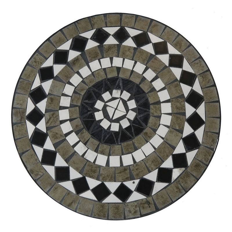 This Mosaic Bistro Set will look gorgeous in any garden, patio or decking area. This set features a stylish black and grey monochrome mosaic design on the tableâ's top and the chairsâ' backs. The wrought iron frame is not only durable but also gives off a wonderful antique look. The chairs are fold-able and lightweight making it easy to store away and great for small spaces.