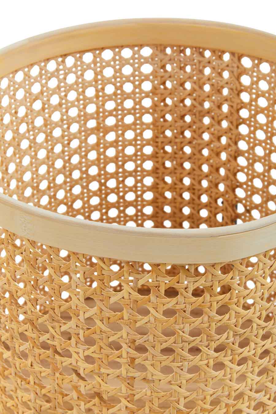 Made from natural rattan, this large planter has a rounded body with hand woven cane around the sides. It is supported with a sleek black metal cross base that adds stability and will complement any living space.