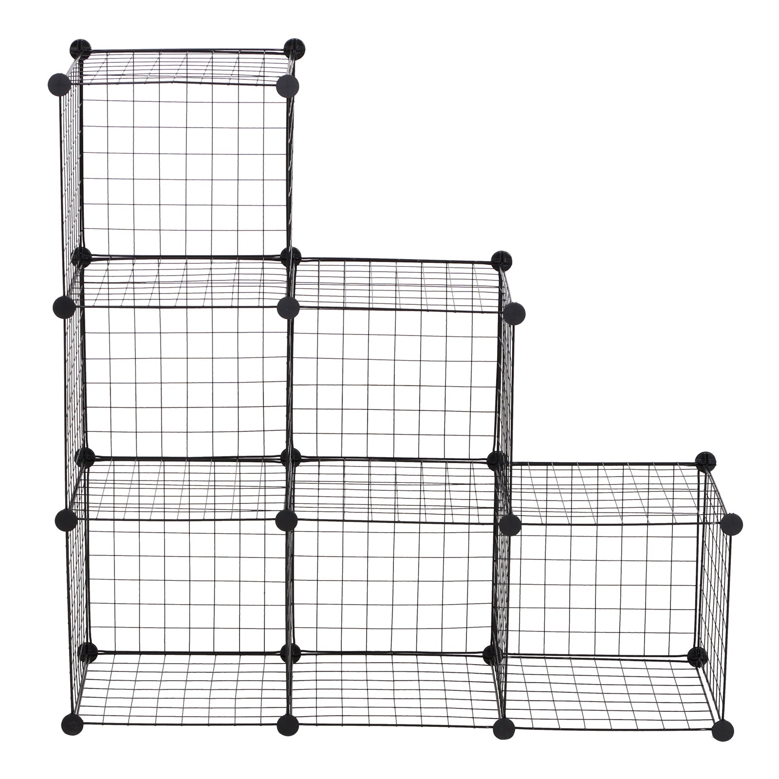 DIY 6 Cube Metal Wire Rack Interlocking Storage Cabinet Living Room Organiser Display Shelves Black