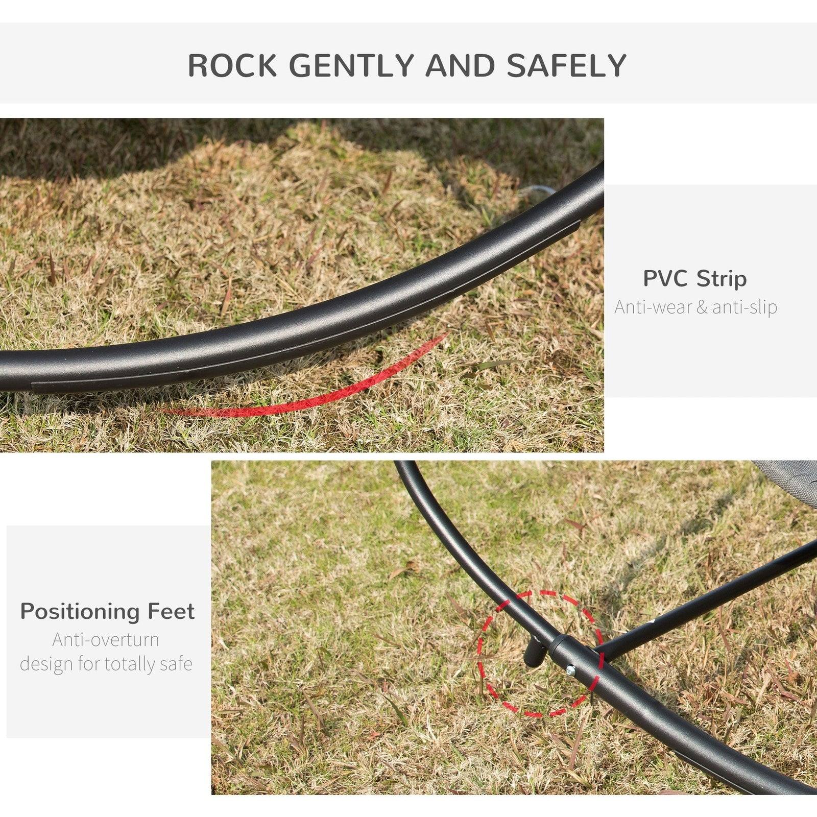 Double the relaxation with this two-person rocking bed from Outsunny. The metal frame is strong for full support, crafted into a curved zero-gravity shape, rocking forwards and backwards gently. The texteline seat holds you properly, and there's a top pillow for comfort. Seat is water-resistant to keep it lightly dry. Take your outdoor relaxation to a new level.