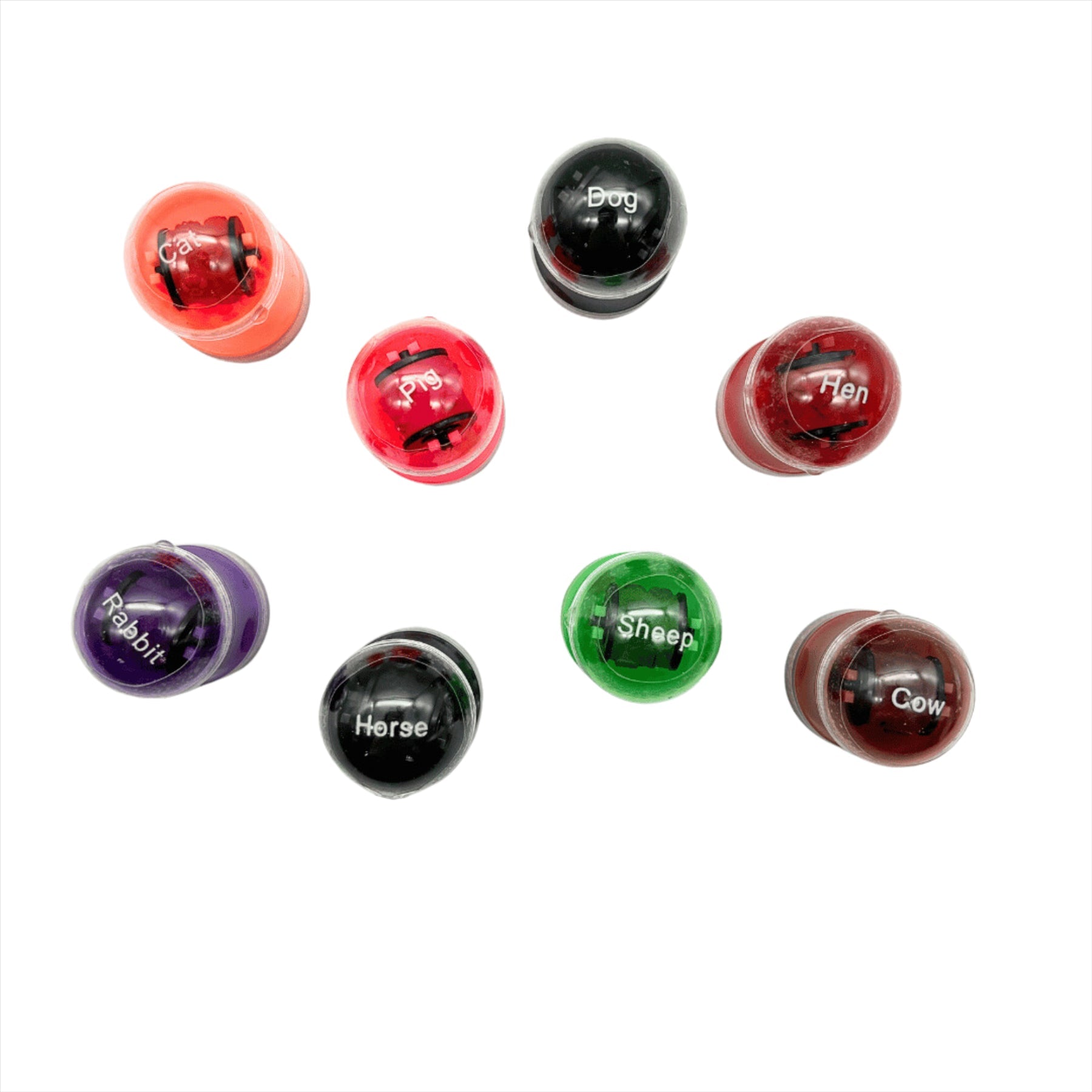 These fun Farm Animal stampers are comprised of a base end which stamps out the animal and a top end which is a roller stamp that prints the animal's footprint.