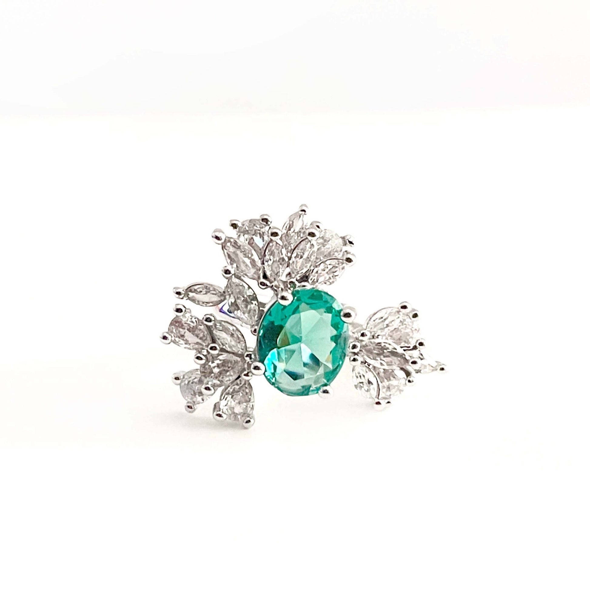 This cocktail ring with its large azure glass stone is a true eye-catcher on the wearer’s finger. The stunning azure colour stone and the surrounding gems sparkle particularly intensely when the light hits making it perfect for the party season.