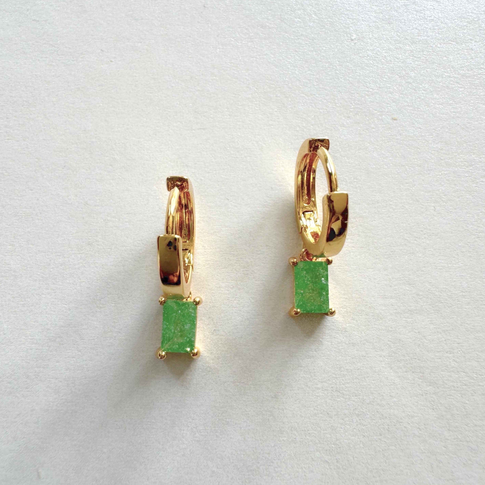 Crafted to embrace your lobes snugly, these hoops add a touch of sophistication to any outfit. The small aqua gem charms bring a subtle pop of color, perfect for adding a hint of sparkle to your look. Whether you're dressing up for a special occasion or adding a touch of glamour to your everyday style, these huggie hoops are the perfect accessory.