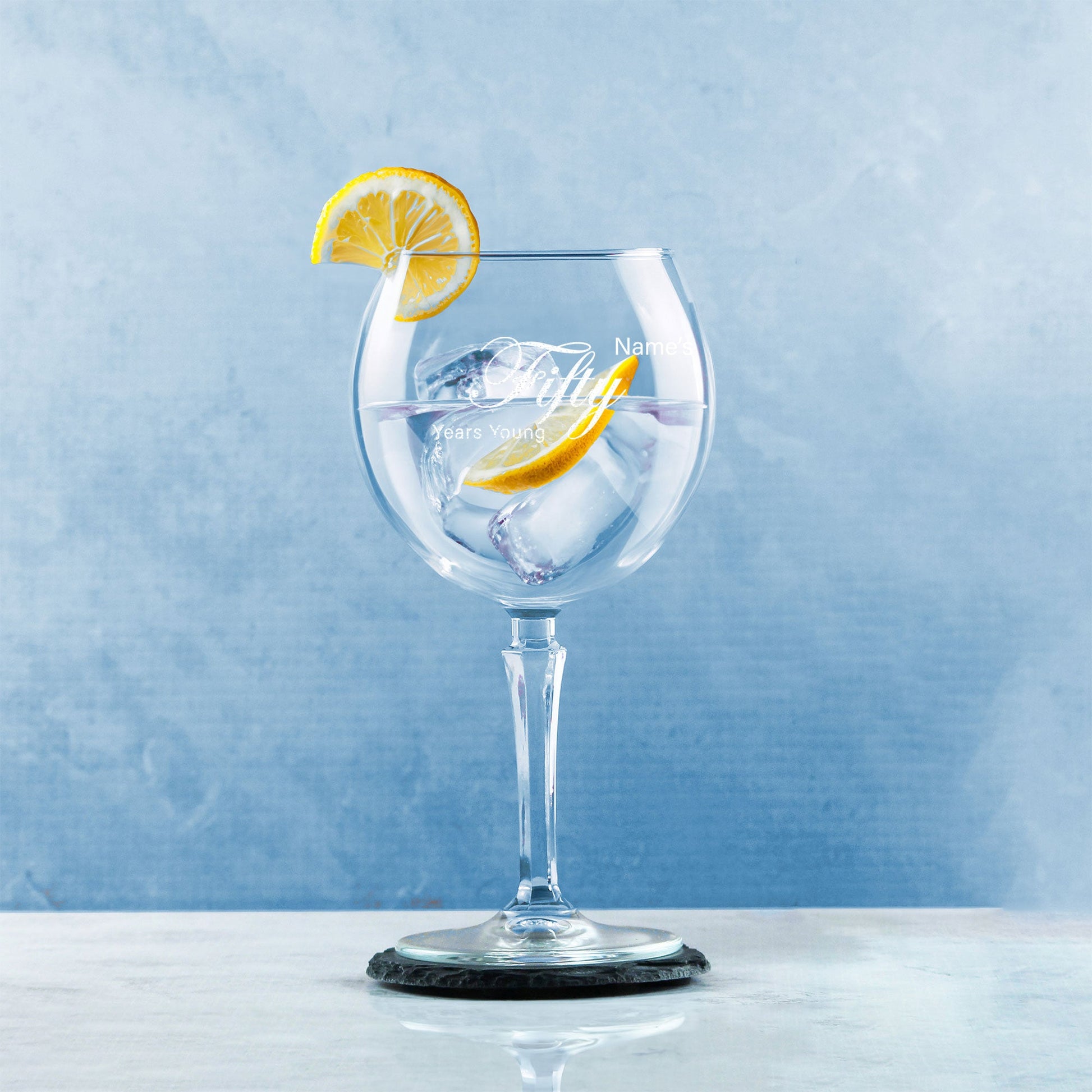 Engraved 50th Birthday Hudson Gin Glass, Years Young Curly Font