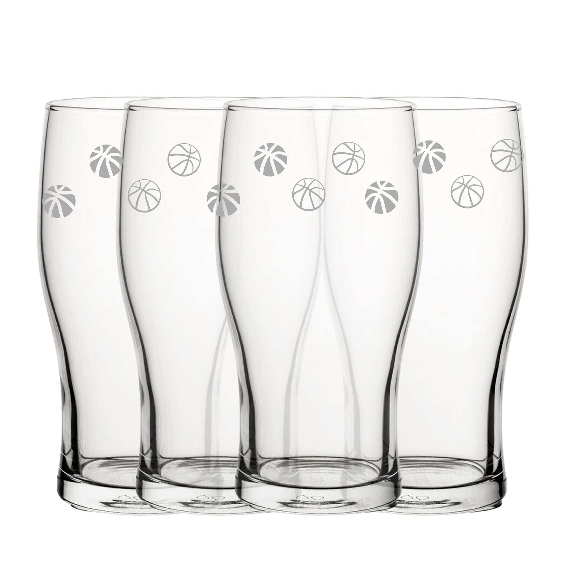 Engraved Basketball Pattern Pint Glass Set of 4, 20oz Tulip Glasses
