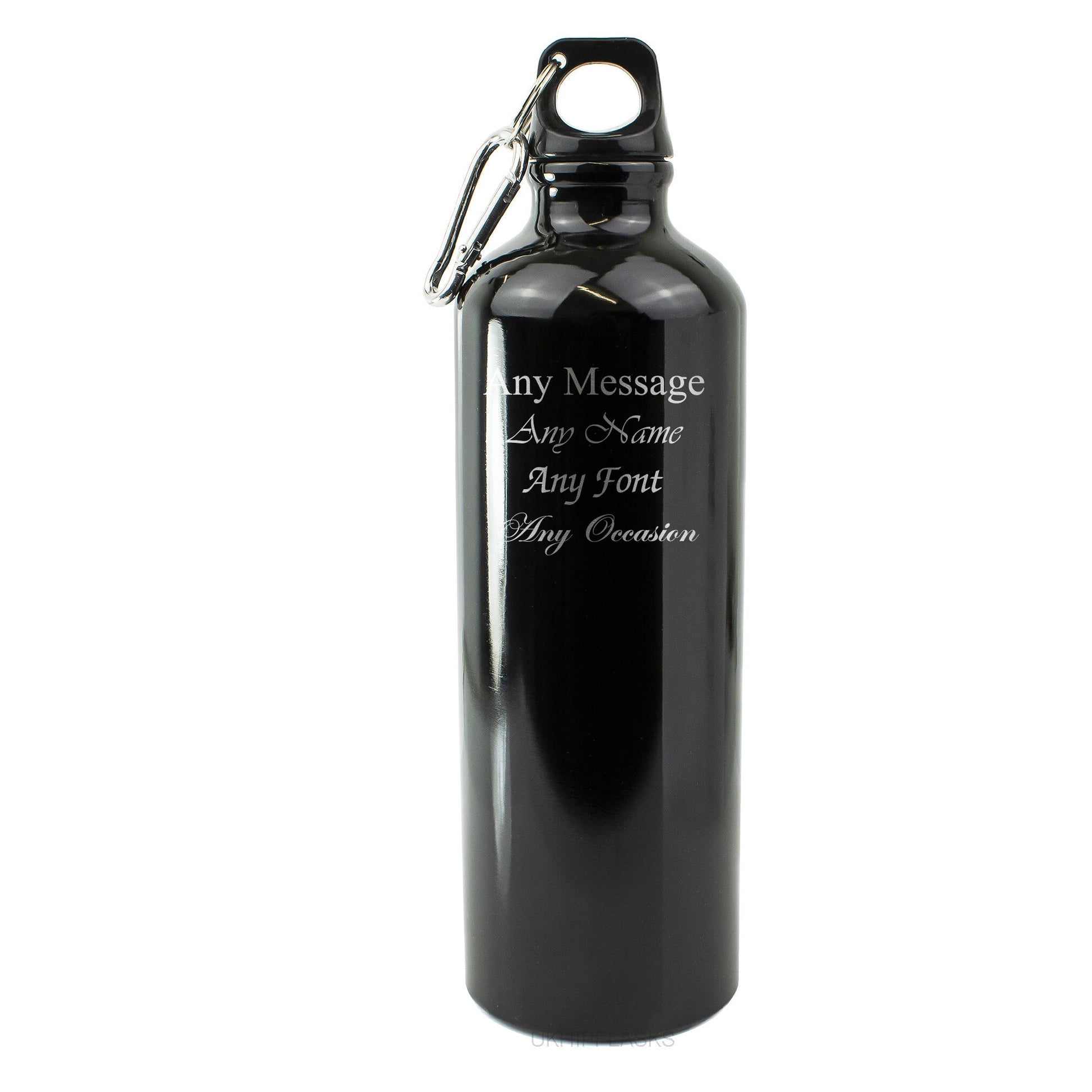 Personalise this 750ml Aluminium Black sports bottle with any message. The perfect gift for someone with the need for hydration on the go.