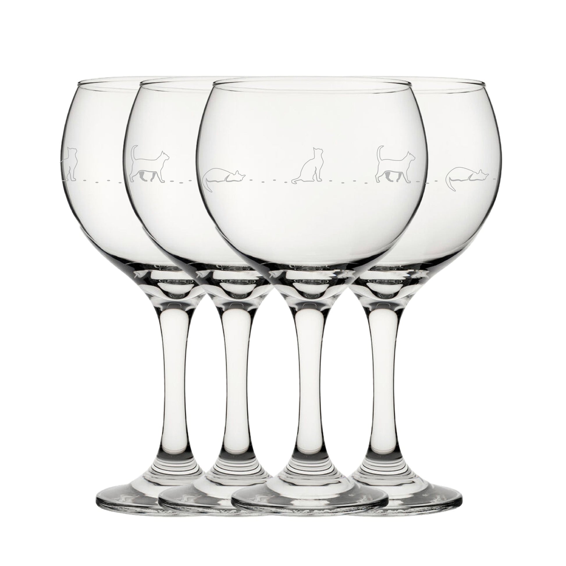 Engraved Cat Pattern Gin Balloon Set of 4 22.5oz Glasses.