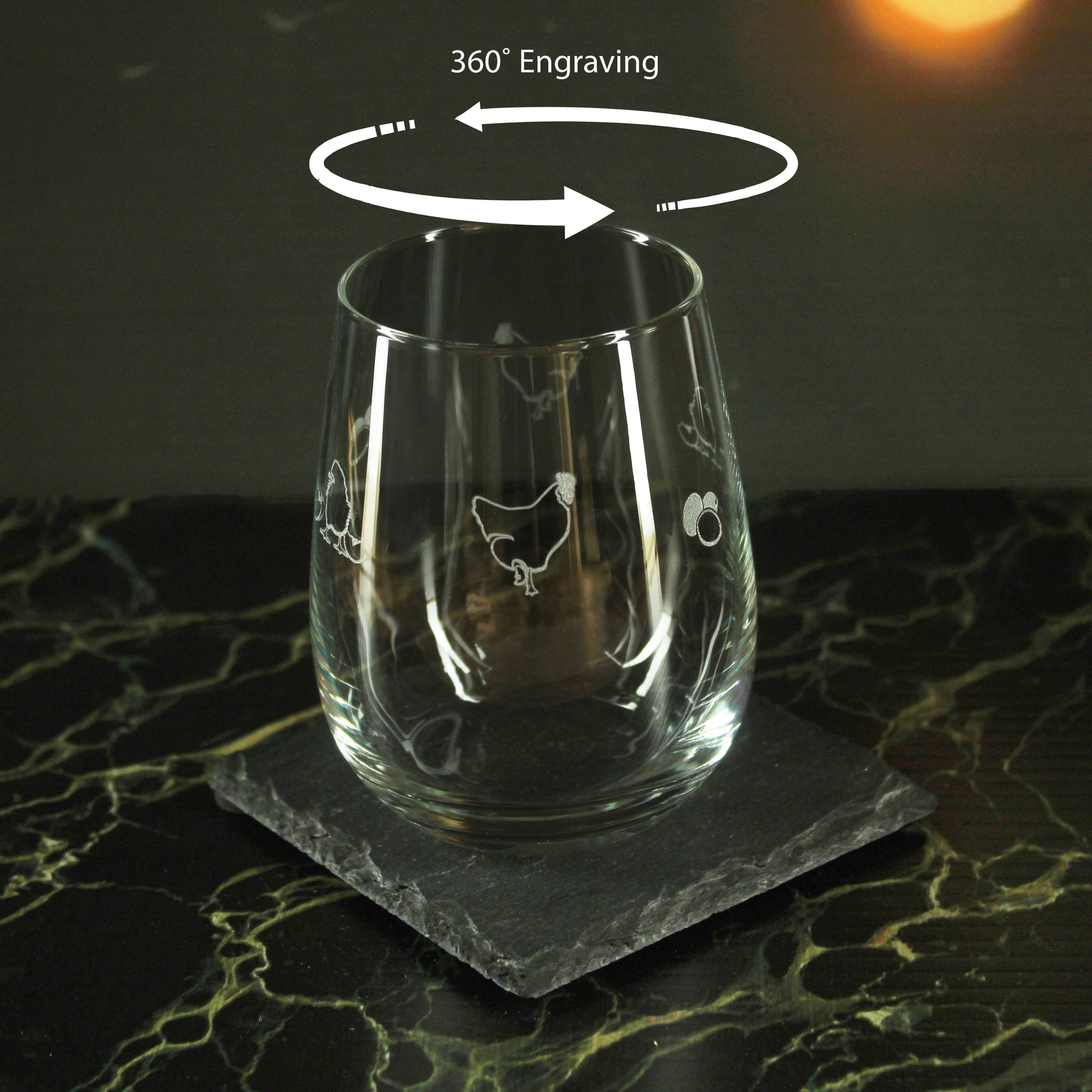 Decorate your glassware with this unique engraved set of Gaia stemless wine glasses. The perfect practical gift for a new home or anyone who wants to spice up their kitchen cupboards. These glasses hold up to 12oz or 355ml, making them the perfect size for wine or water. All glasses are machine engraved and boxed in house ready to gift. Because these glasses are engraved, they are colourless and have a textured frosted look where the pattern is present. No need to worry about the pattern washing off as these glasses are dishwasher resistant and have a permanent engraved texture. We recommend washing before first use and between uses. Our glasses make the perfect practical gift that can spice up any kitchen cupboard and make great home decoration that is sure to impress guests. If you have any questions or inquires with your order, our friendly team will be happy to help. Looking for more engraved gifts? Visit our store for hundreds of unique engraved glasses, Lighters, Hipflasks, Tankards and much more!