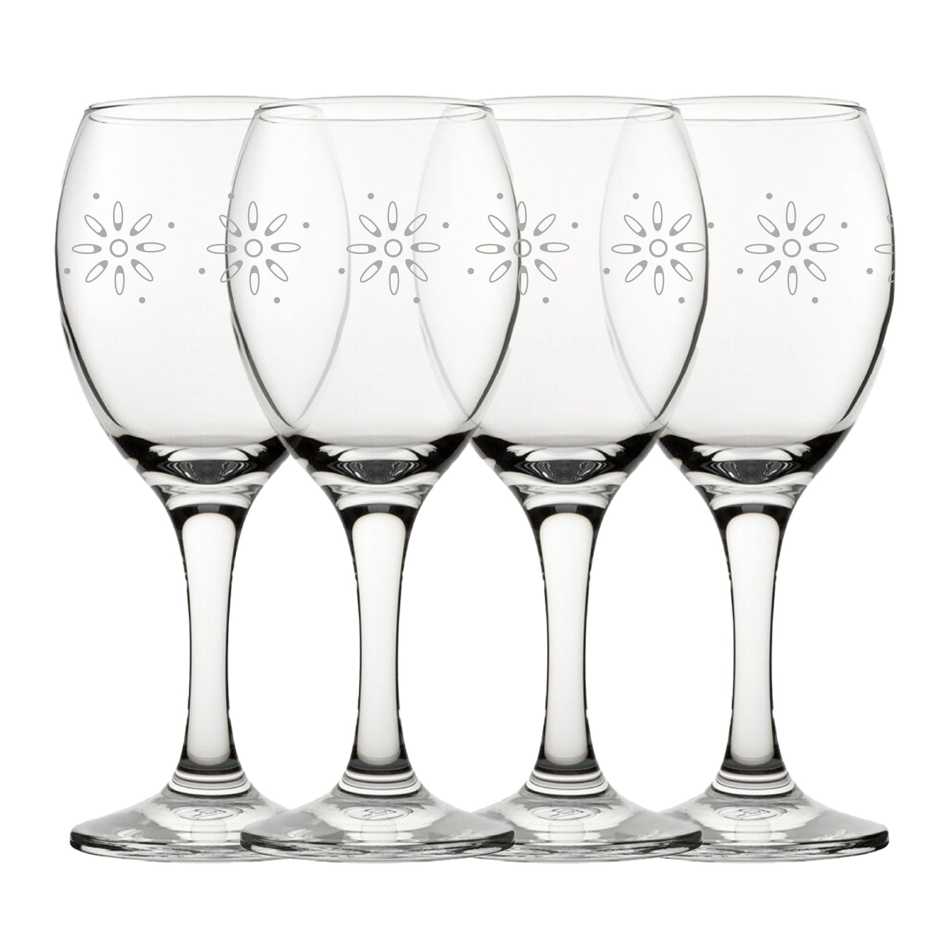 Engraved Fireworks Pattern Pure Wine Set of 4 11oz Glasses
