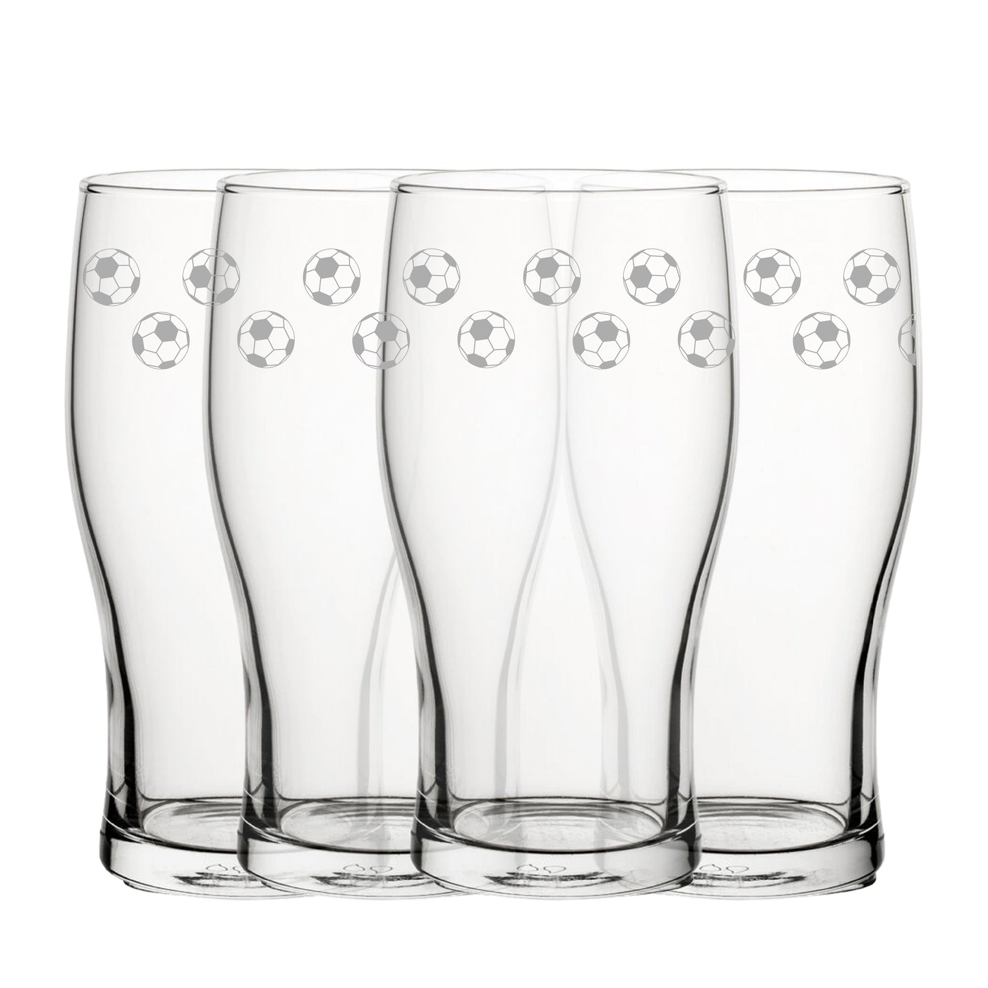 Engraved Football Pattern Pint Glass Set of 4, 20oz Tulip Glasses