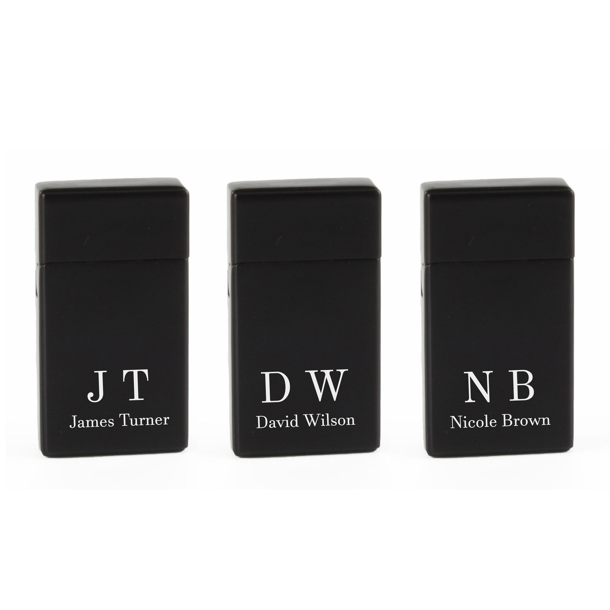Engraved Jet Gas Lighter Black Initials Gift Boxed