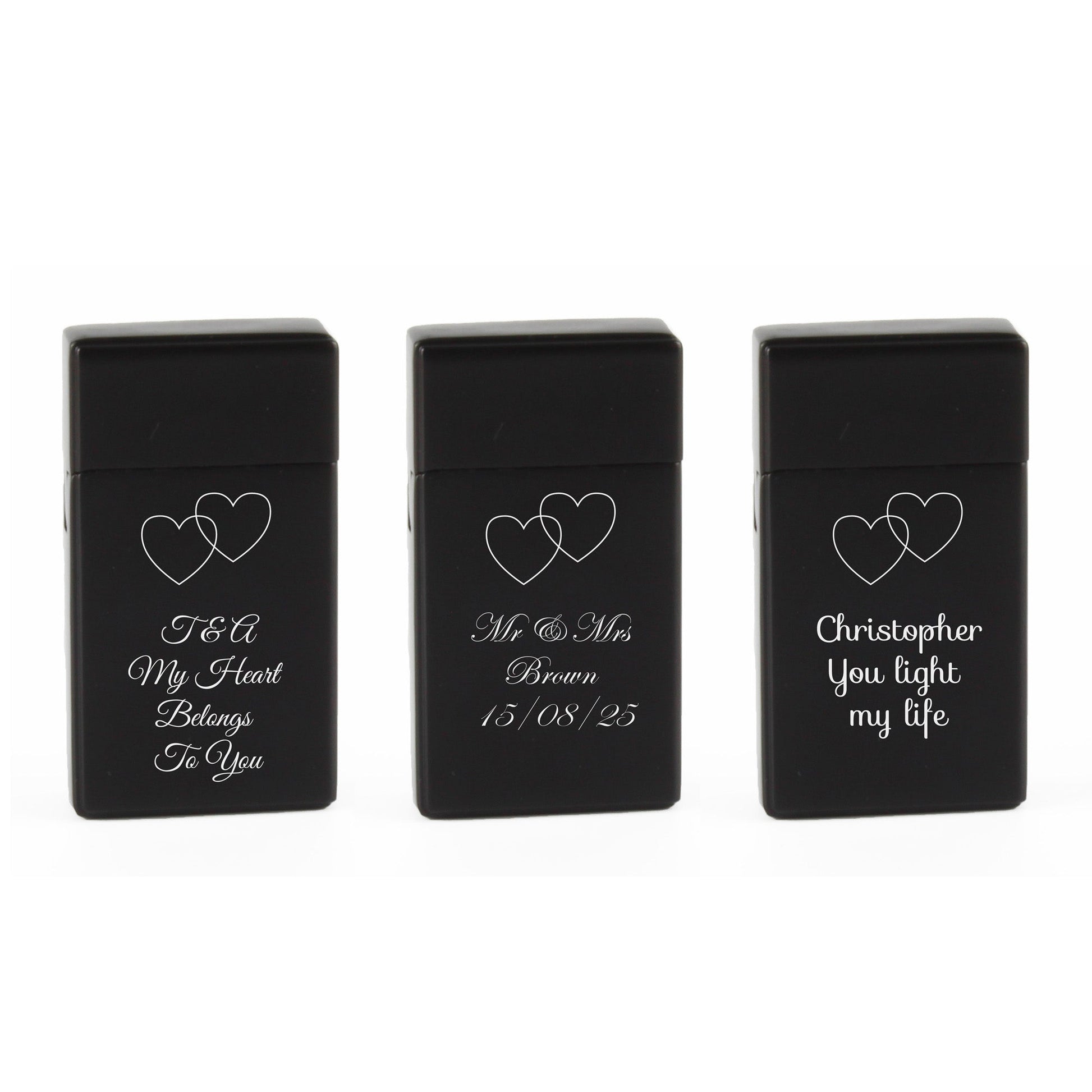 Engraved Jet Gas Lighter Black Overlapping Hearts Gift Boxed