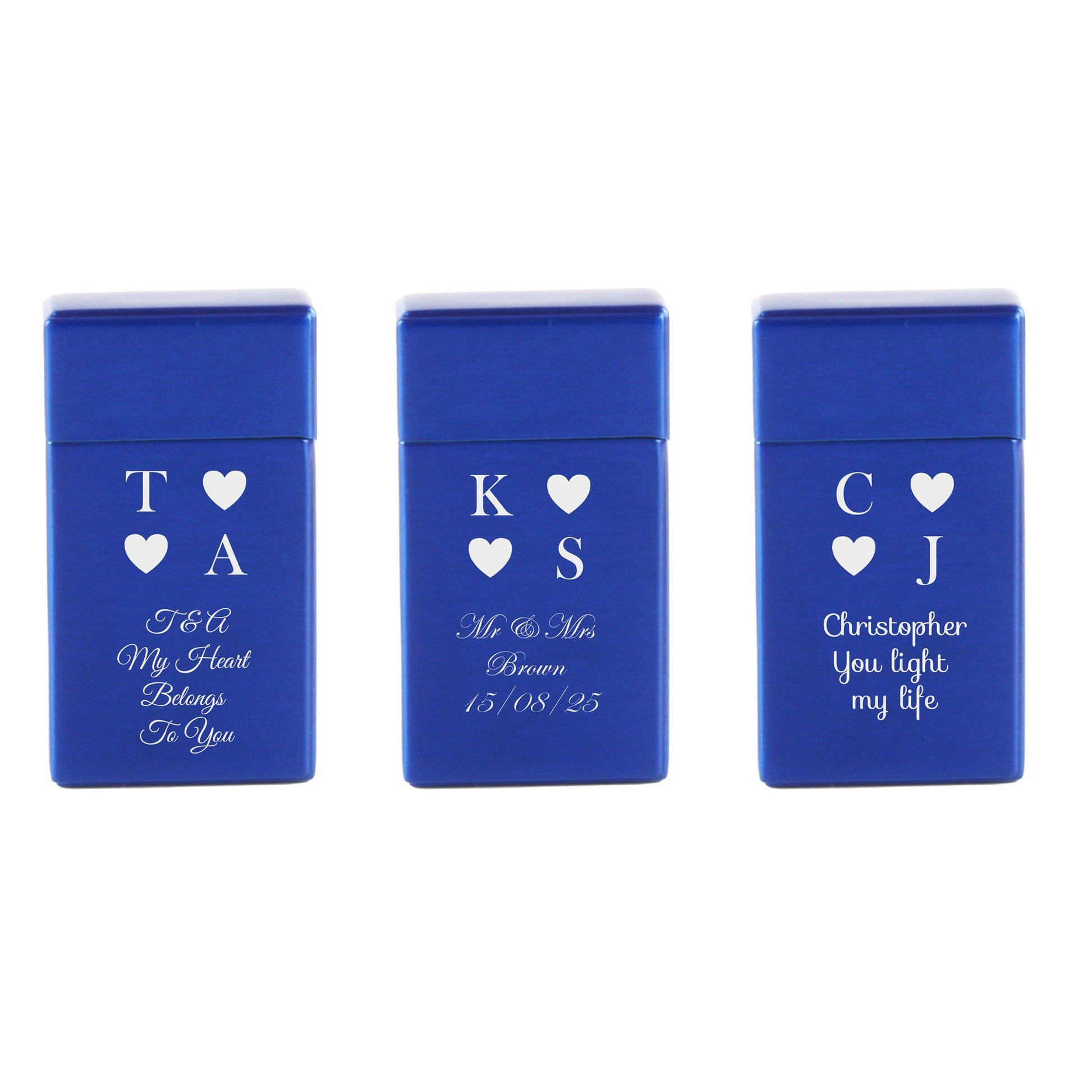 Engraved Jet Gas Lighter Blue Heart Initials Gift Boxed