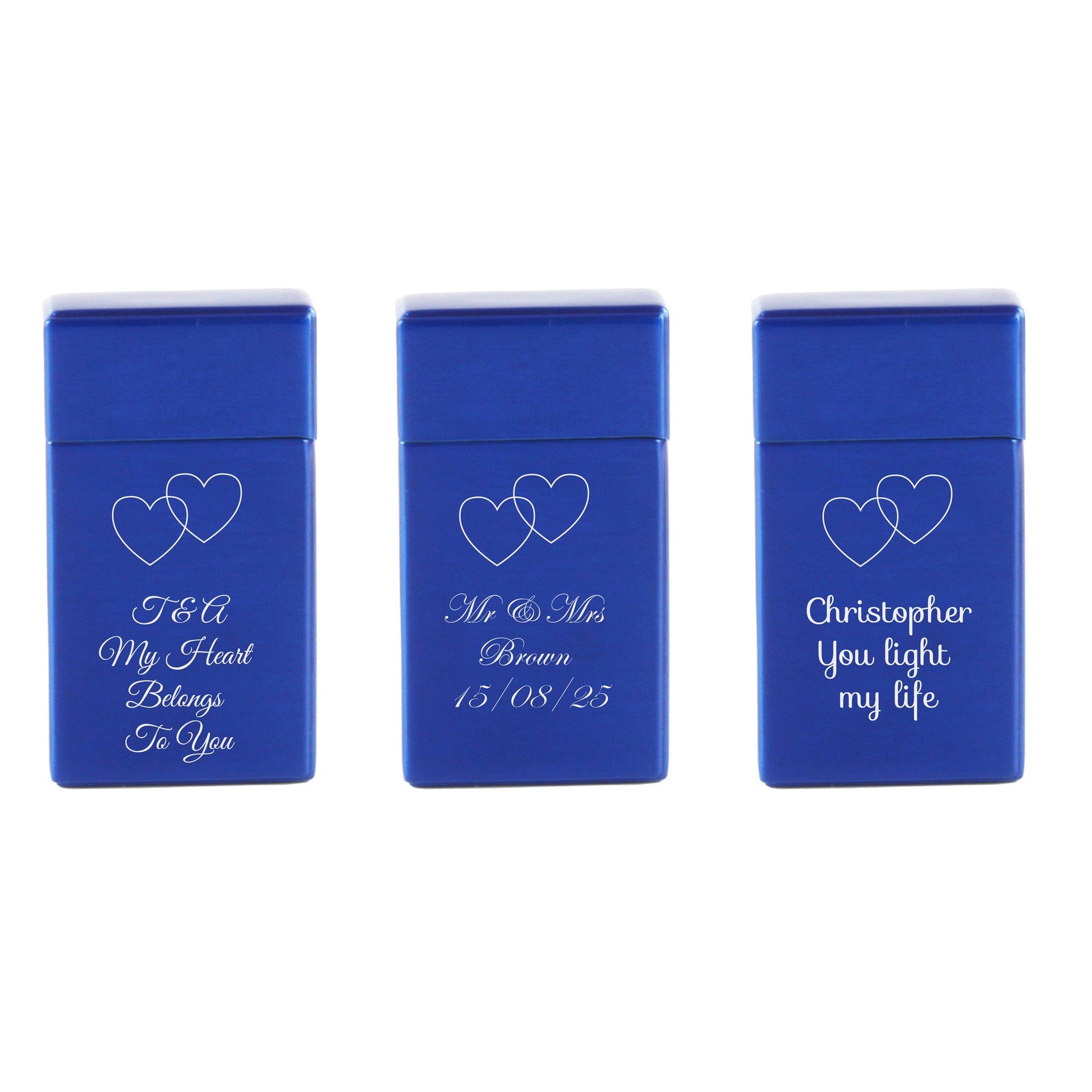 Engraved Jet Gas Lighter Blue Overlapping Hearts Gift Boxed